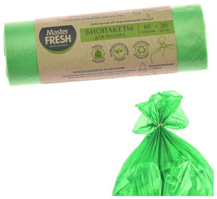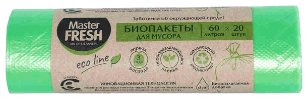 Мешки для мусора Master FRESH БИОпакеты 60 л, 20 шт., зеленый информация: