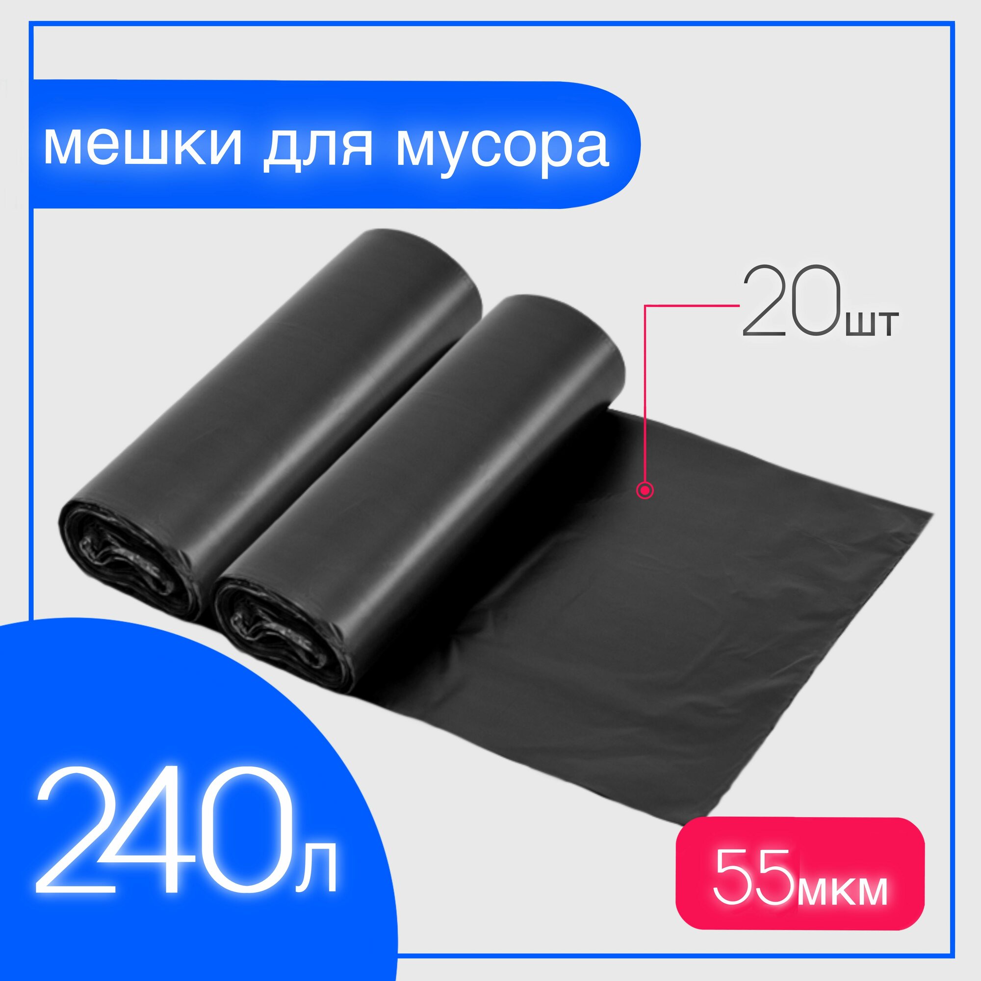 Мешки для мусора 240л, 20шт, ПВД, 55 мкм, особопрочные информация: