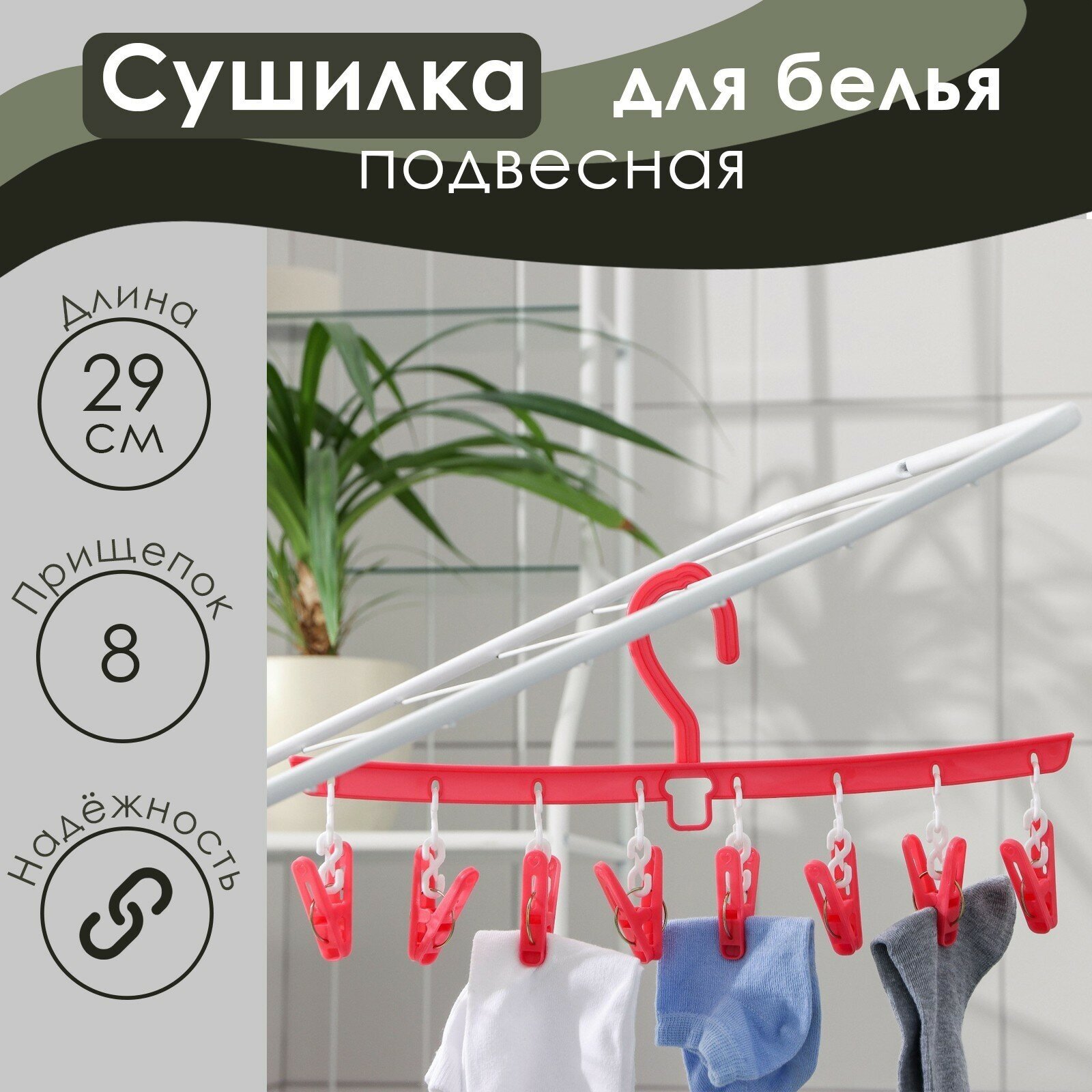 Сушилка для белья подвесная Доляна, 8 прищепок, 29 см, цвет микс