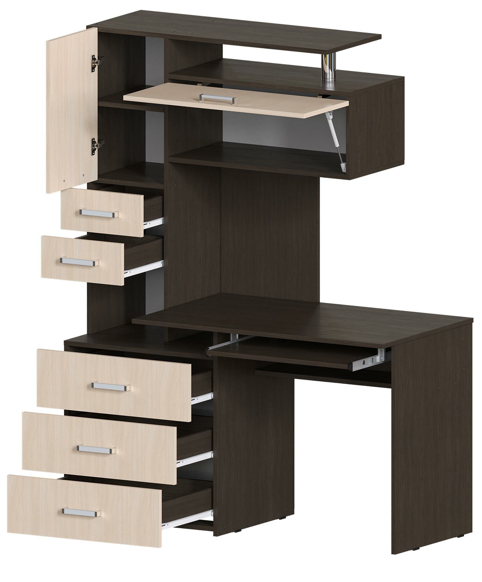 Стол компьютерный маленький подвесной с ящиками Шкафмарт СО-6 Венге