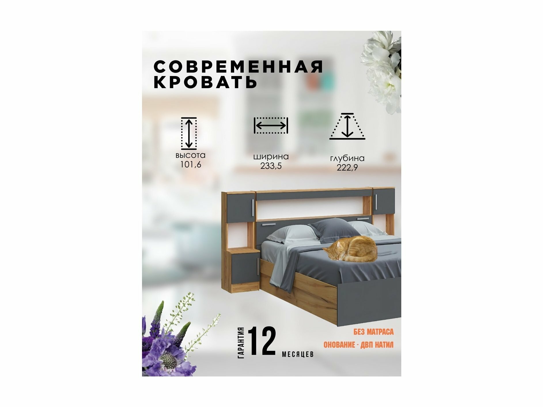 Кровать Миф Мартина графит / дуб крафт 203.7х123.5х80 см
