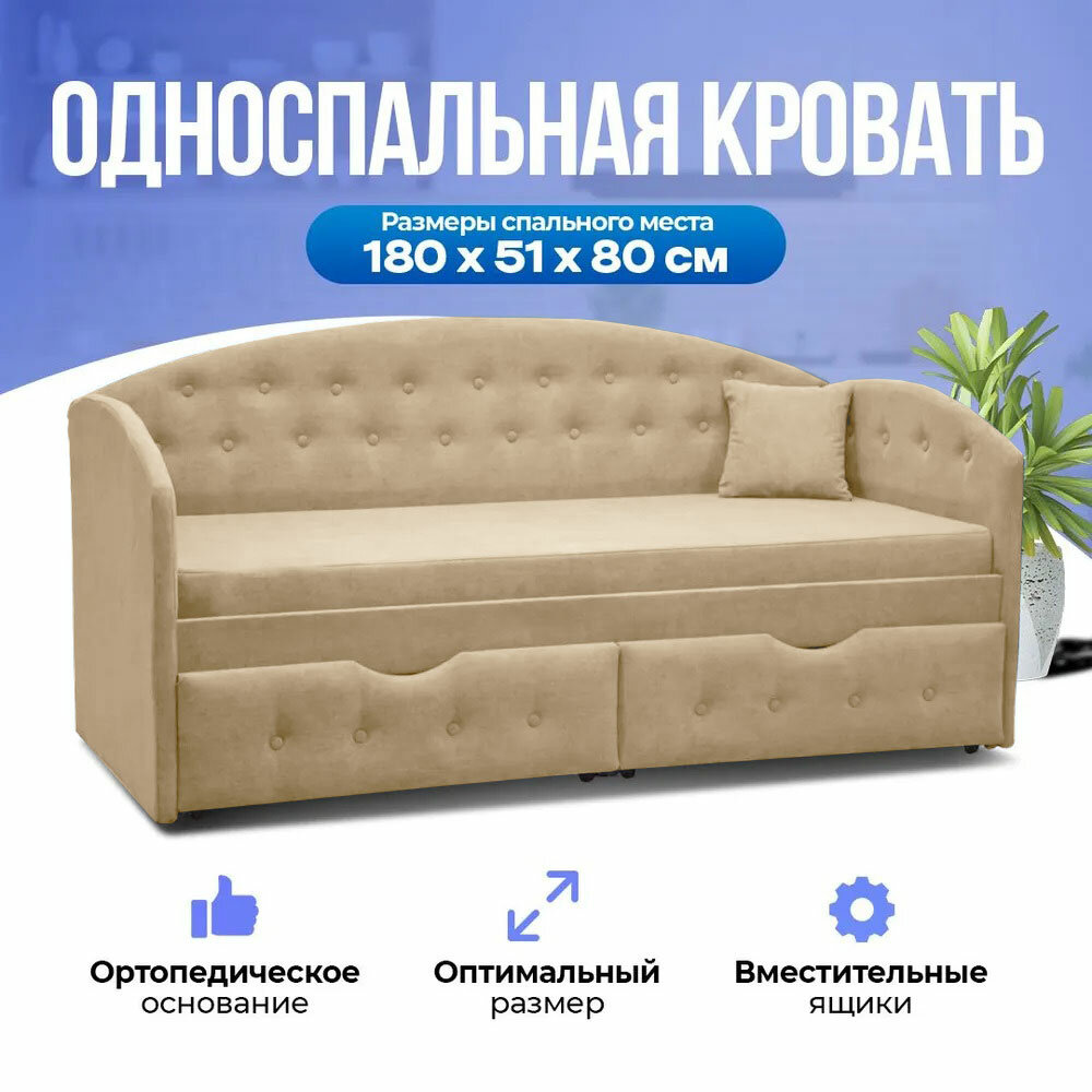 | Особенности | мягкое изголовье, с бортиком, с выдвижным спальным местом, с диваном, с изножьем, с ящиком для белья, усиленная конструкция |