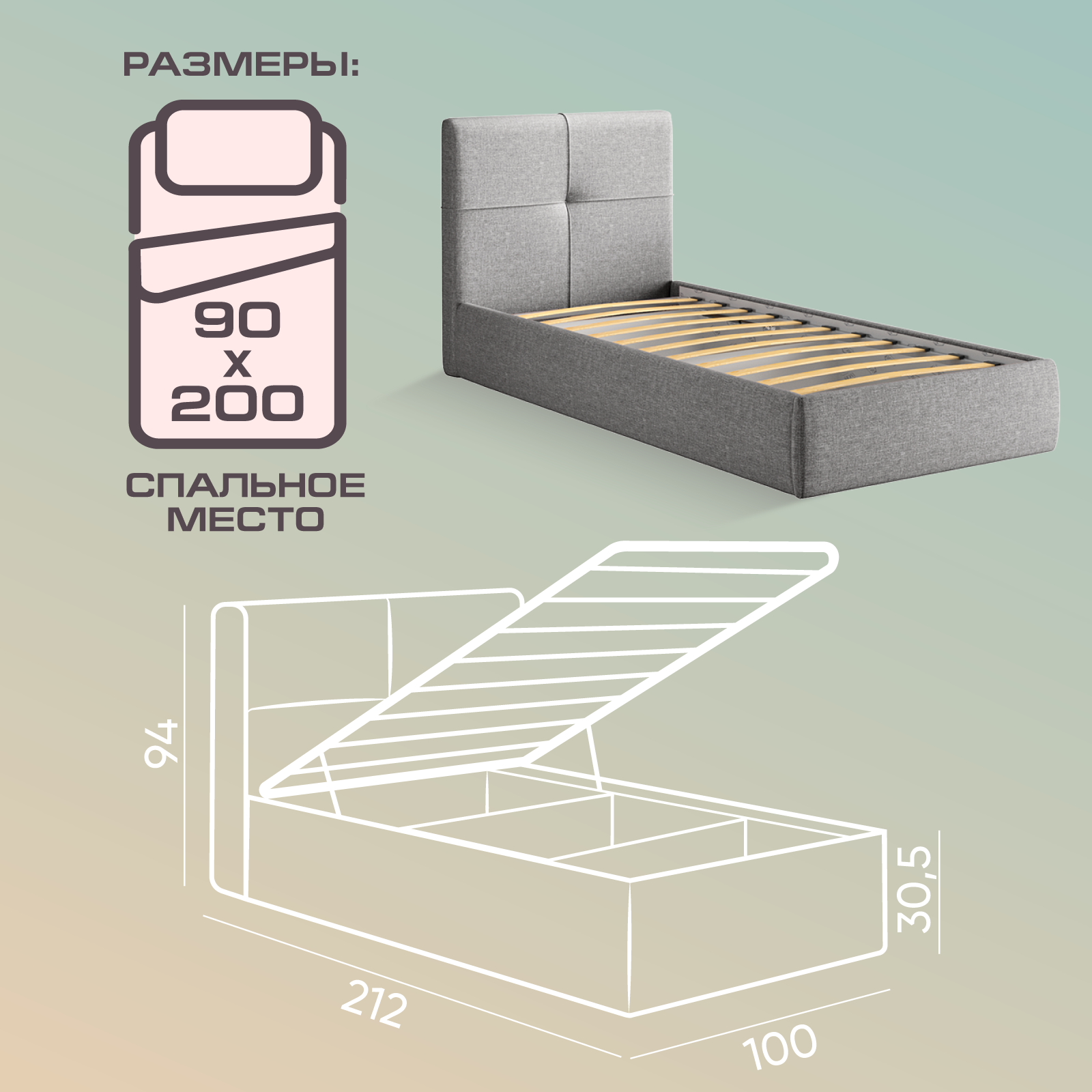 Отзывы на Детская односпальная кровать 90х200 см Прима мод.1, подростковая для дома и спальни, рогожка серая, АМИ Мебель