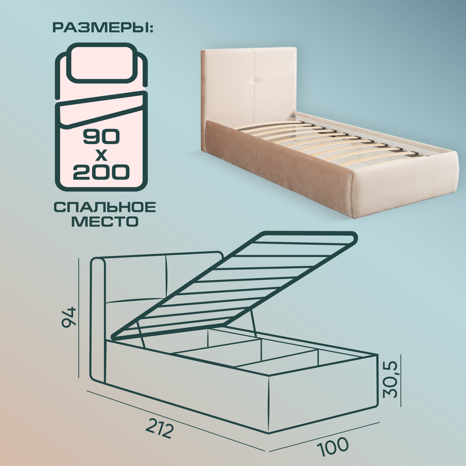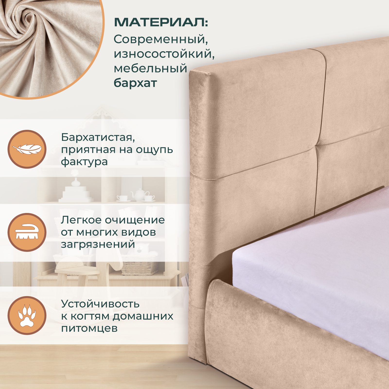 Отзывы на Детская односпальная кровать 90х200 см Прима мод.1, подростковая для дома и спальни, бархат бежевый, АМИ Мебель