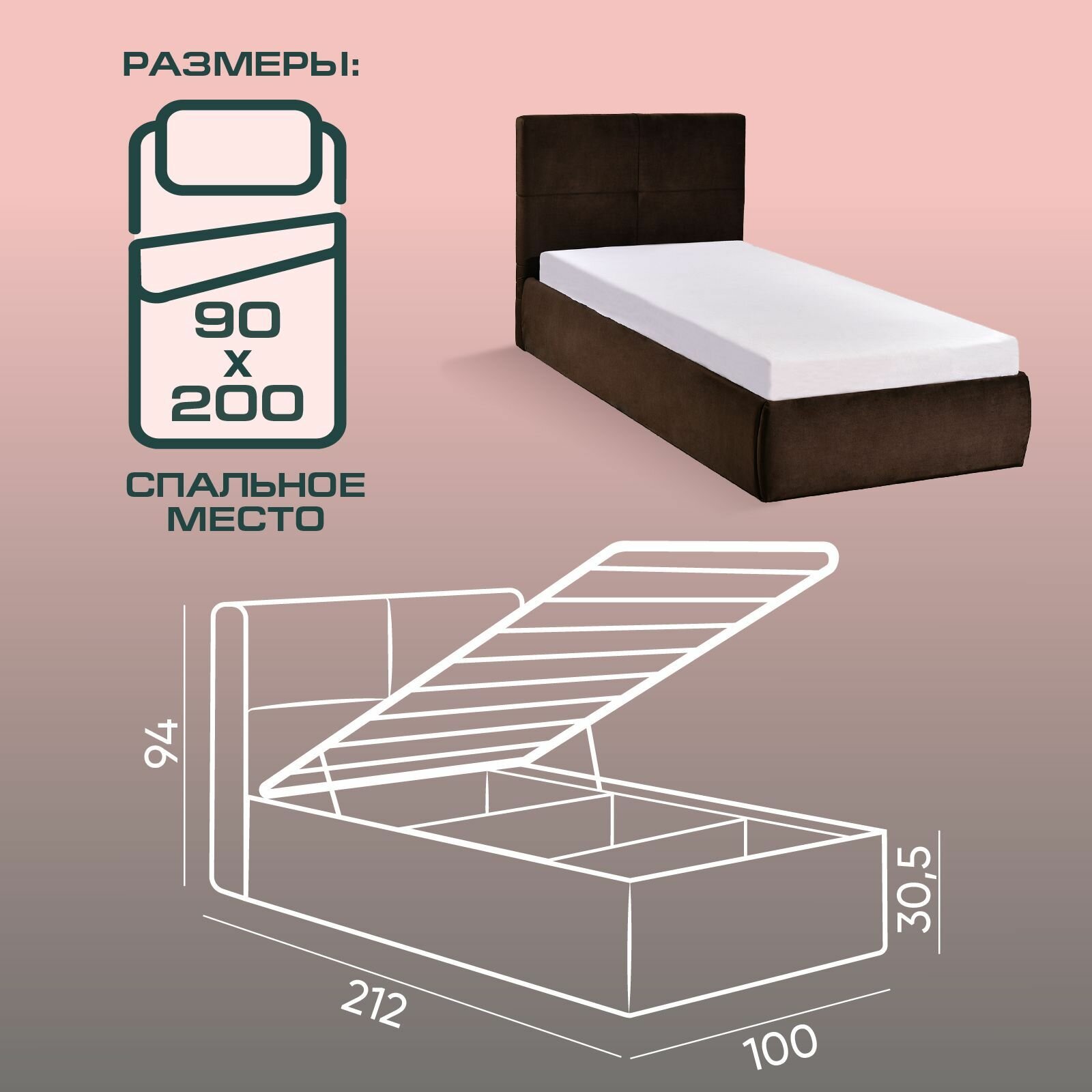 Отзывы на Детская односпальная кровать 90х200 см Прима мод.1, подростковая для дома и спальни, вельвет шоколадный, АМИ Мебель
