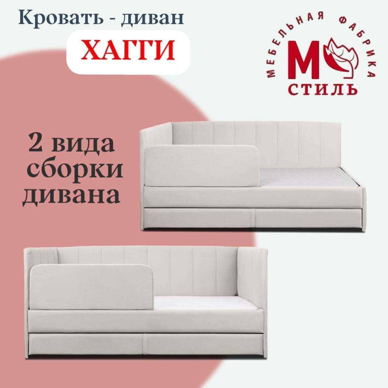 Отзывы на Кровать-диван Хагги 200*90 бежевая с защитным бортиком, ящиком для хранения