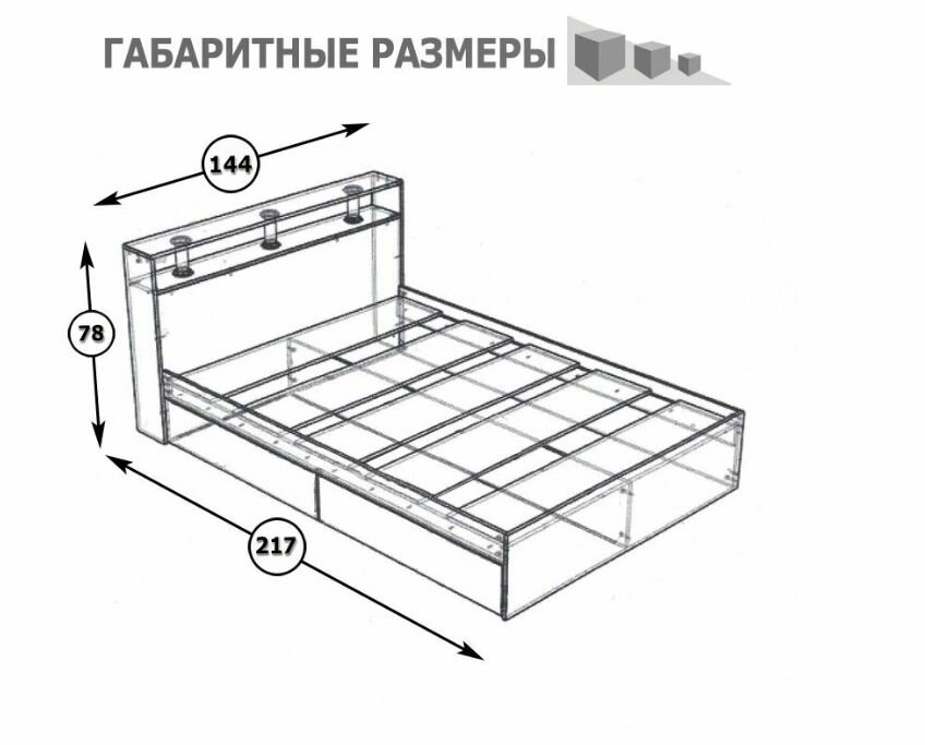 | Комплектация | кровать с основанием (настил ЛДСП), полка в изголовье, матрас приобретается отдельно |