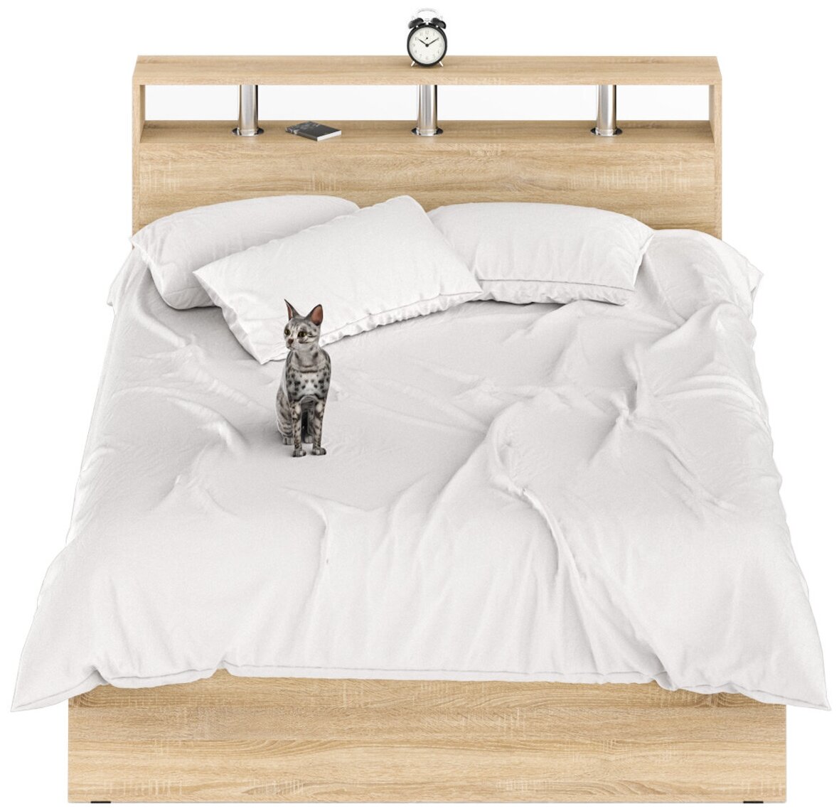 Кровать Камелия 1600, цвет дуб сонома, ШхГхВ 163,5х217х78,2 см, спальное место 1600х2000 мм, без матраса, основание есть