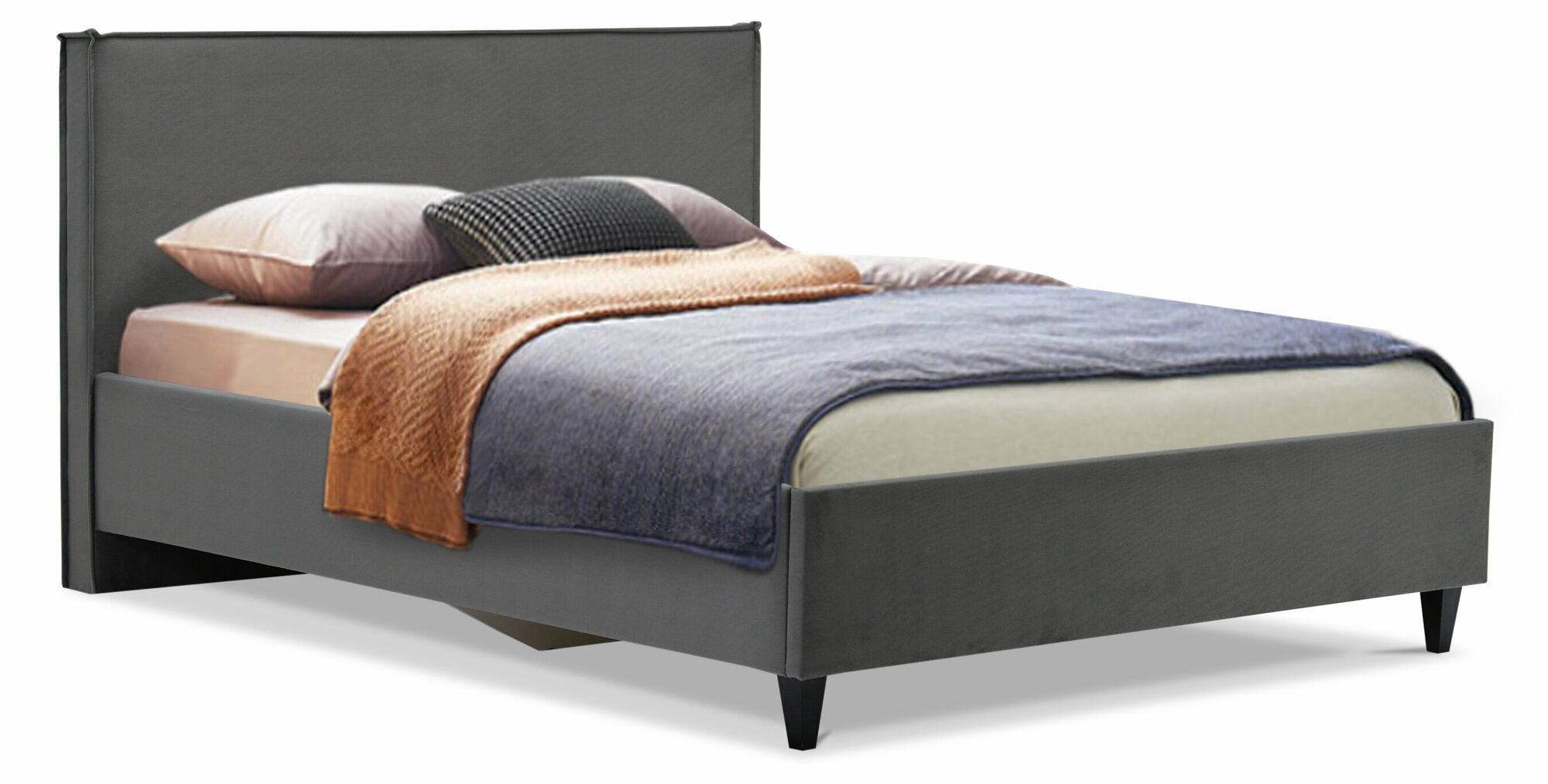 Кровать двуспальная без подъемного механизма MOON FAMILY 1261, размер 180х200 см, велюр светло-серый. Ортопедическое основание в комплекте