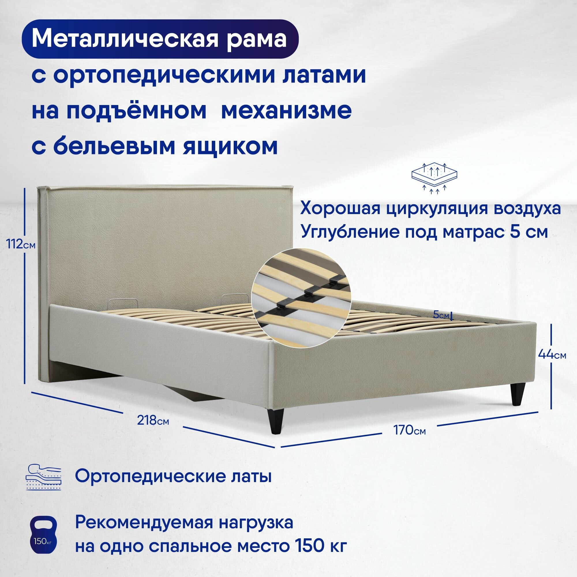 Двуспальная кровать, Ладья, Блэр 160х200 с подъемным механизмом, с мягким изголовьем для дома и спальни, ортопедическое основание, ящик для белья, Dazzle Ivory информация: