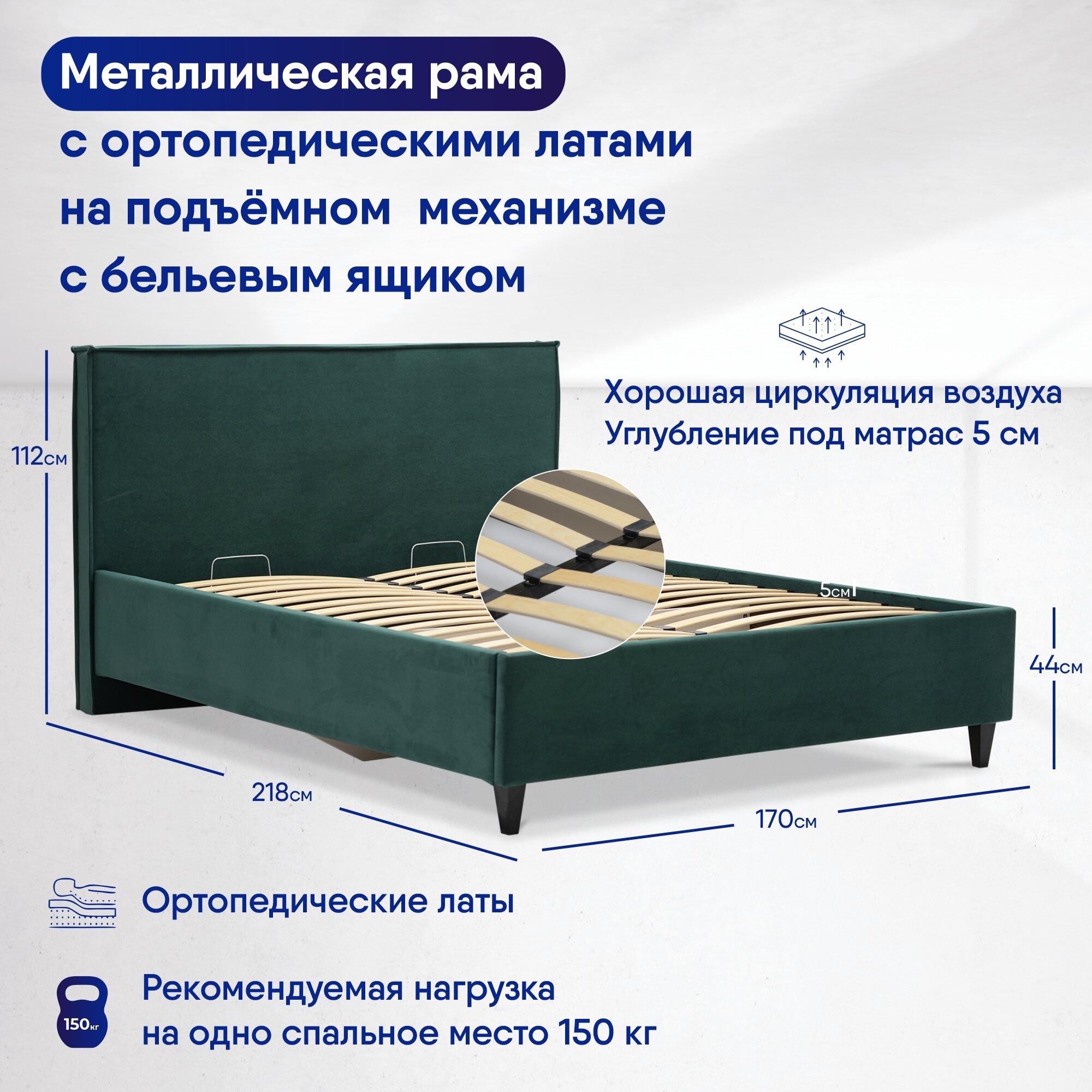 Отзывы на Двуспальная кровать, Ладья, Блэр 160х200 с подъемным механизмом, с мягким изголовьем для дома и спальни, ортопедическое основание, ящик для белья, Ultra Forest