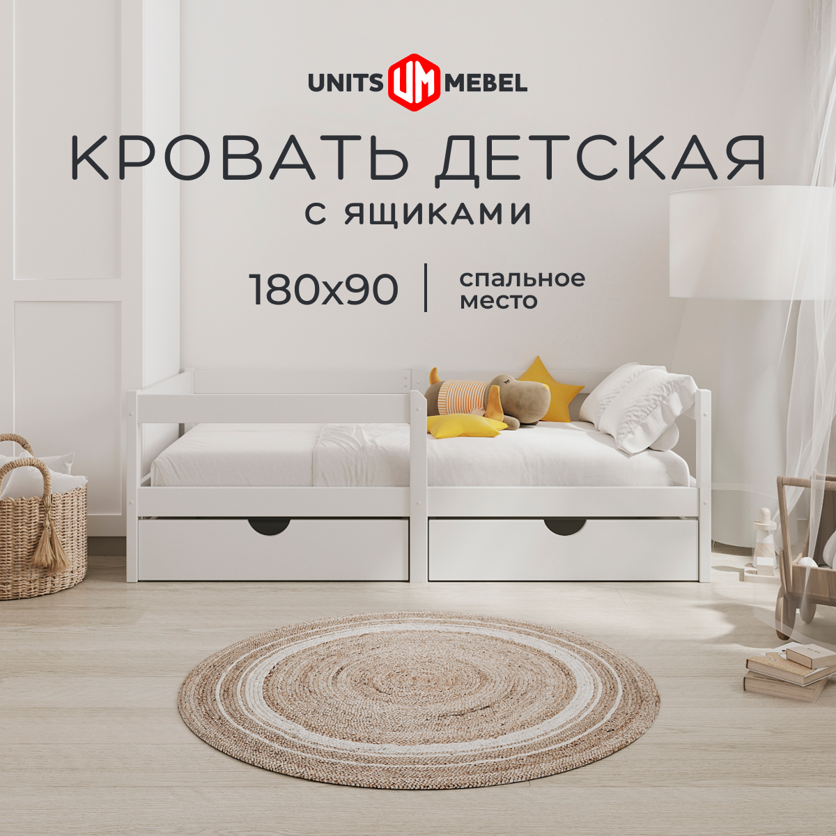 Детская кровать "Соня" 180х90 с ящиками для белья, белая информация: