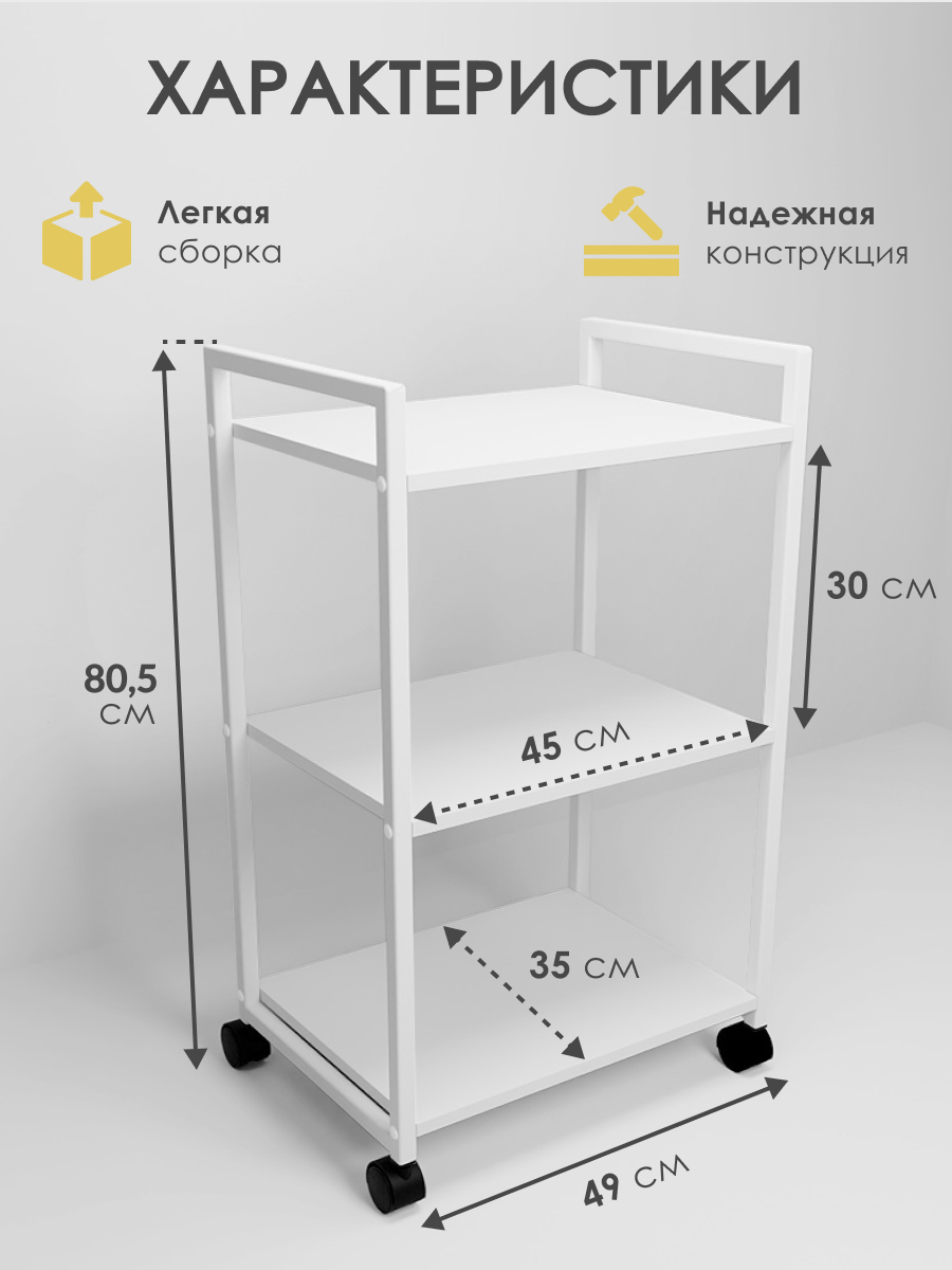 Металлическая этажерка Лофт на колесиках, Уютный мастер, белый металл, белый информация: