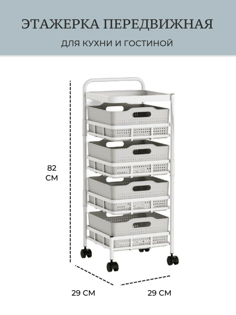 Этажерка на колесиках с 4 раздвижными ящиками для хранения информация: