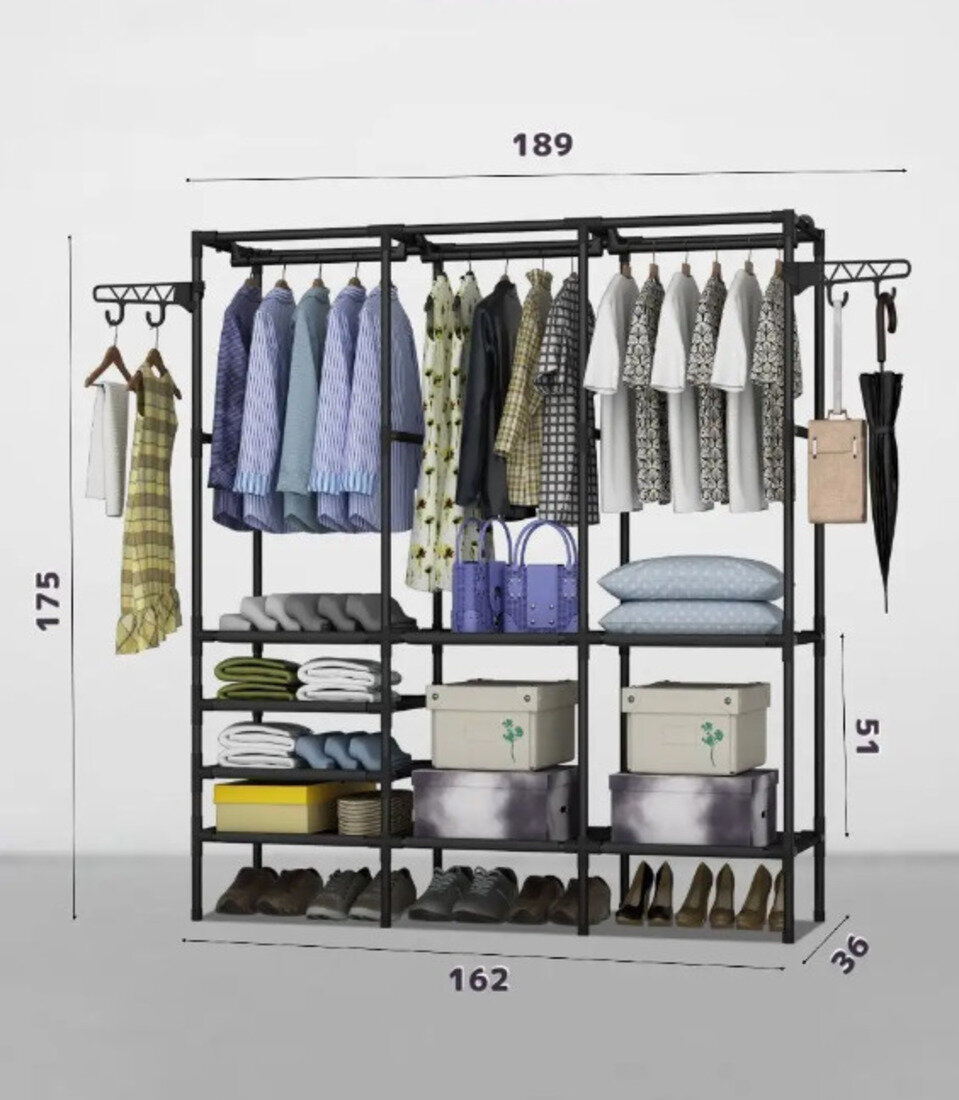 Гардеробная система "Beautiful House", 8 полок 175х162х36 см, металл/пластик, черная информация: