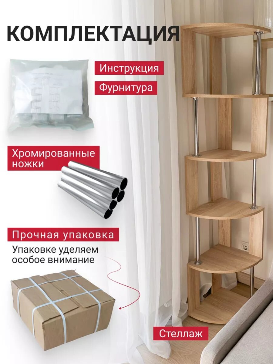 Стеллаж деревянный напольный угловой дуб сонома информация: