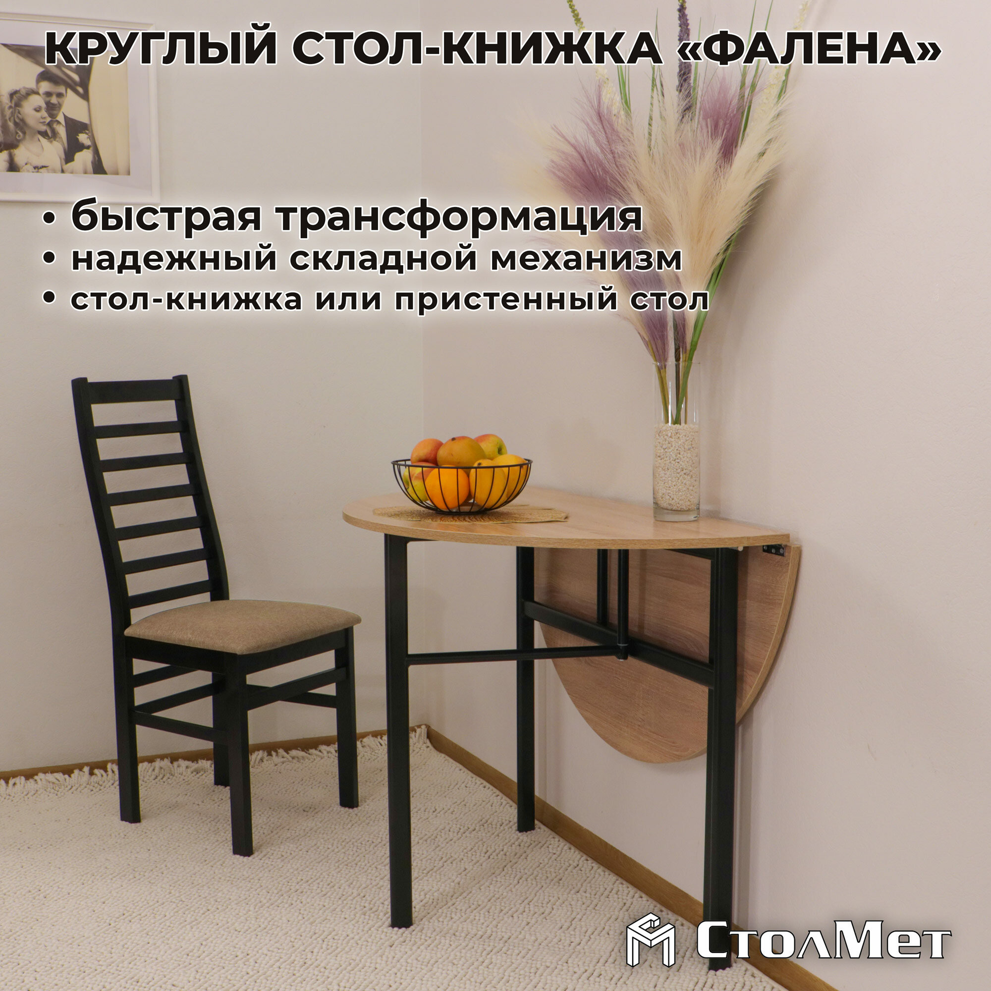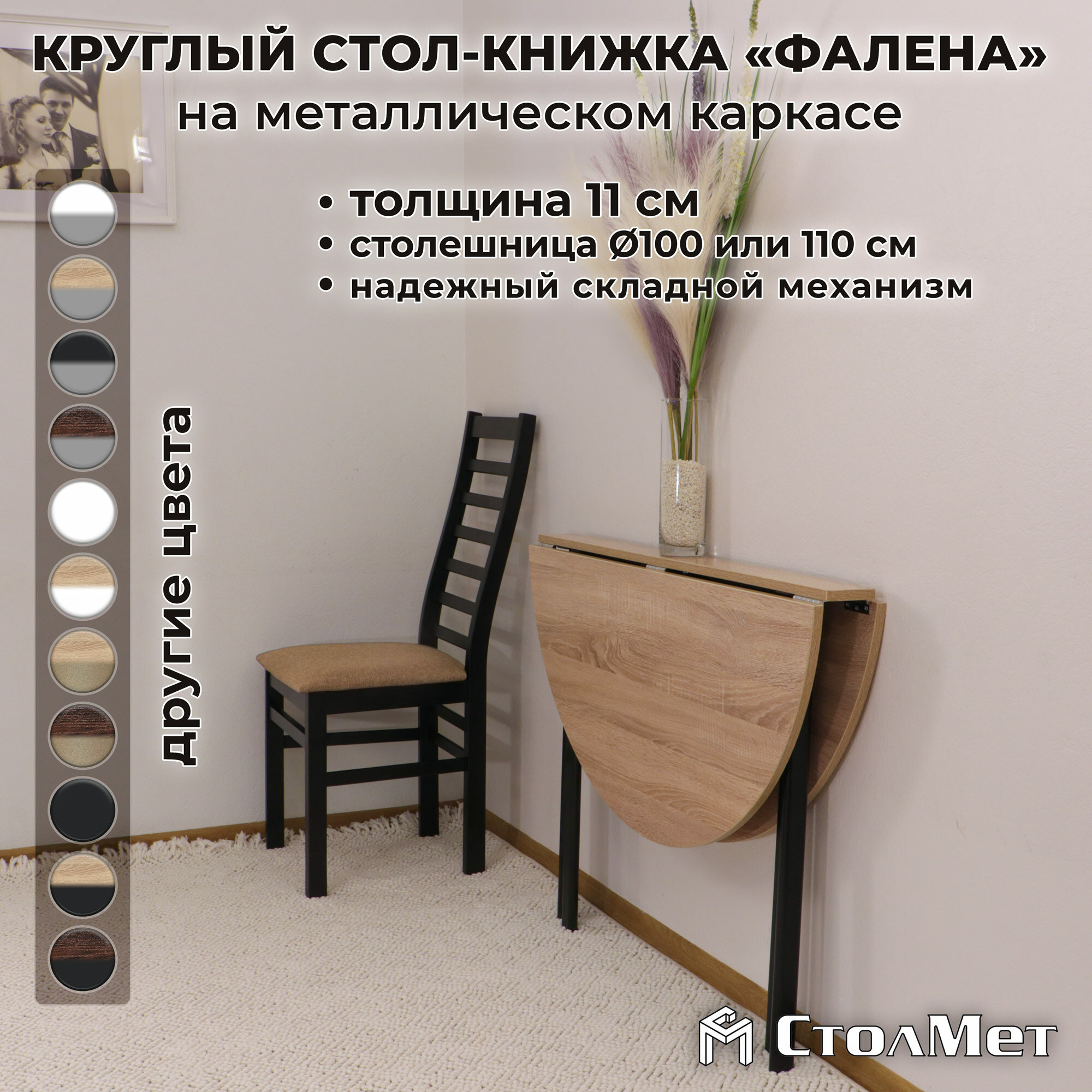 Круглый стол-книжка «Фалена», 100, дуб сонома, черный информация: