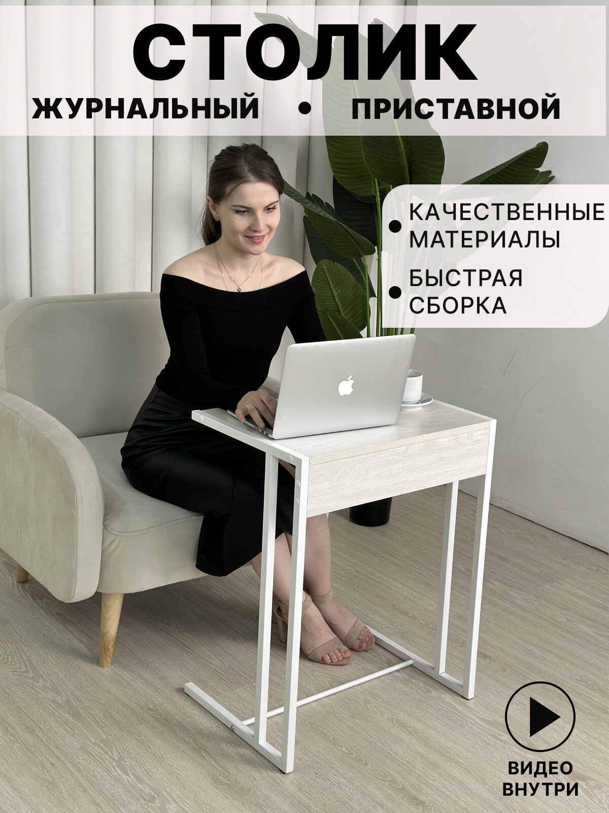 Столик журнальный приставной прикроватный сонома белый 4 300 ₽