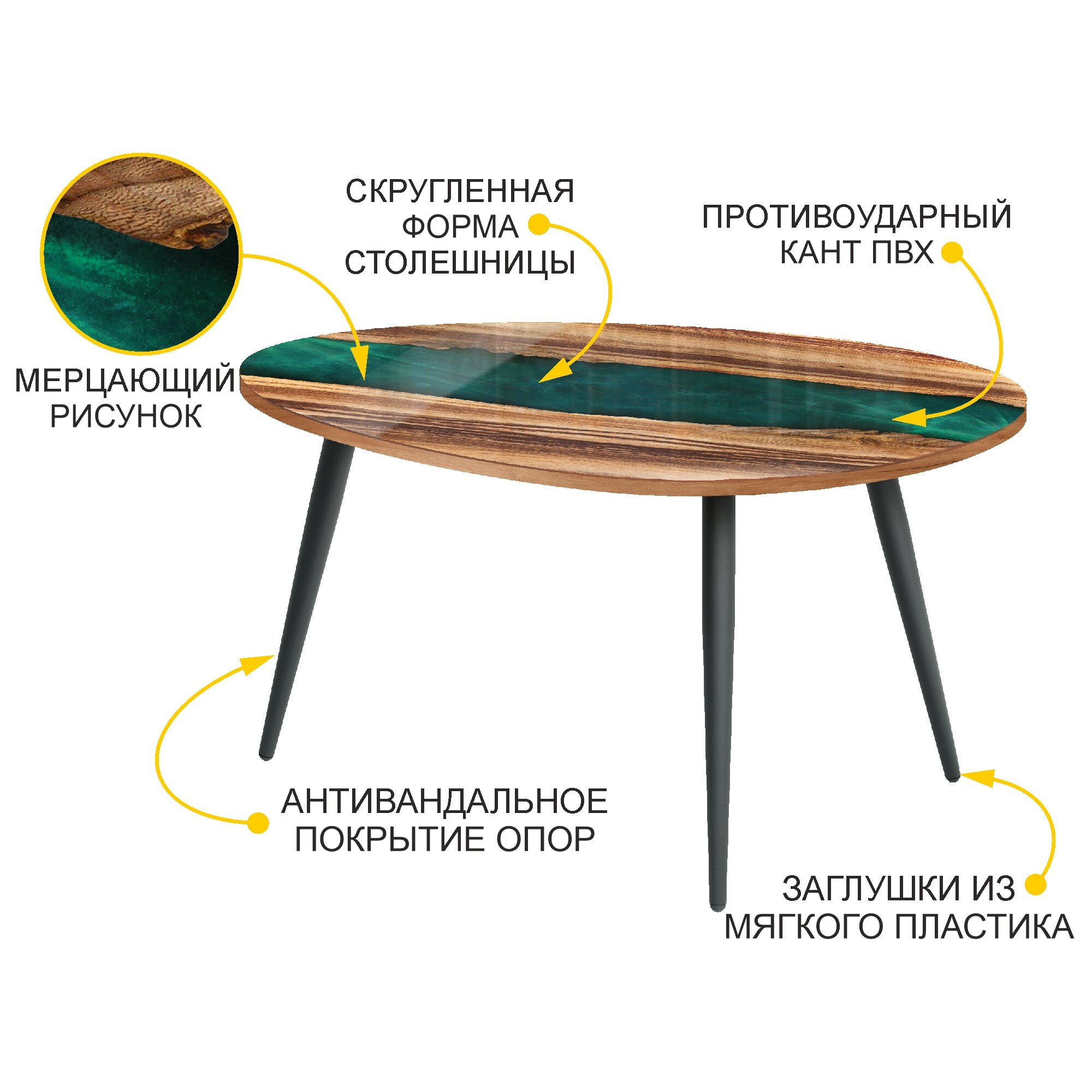 10 цен на Журнальный стол Рим 16 (04) Река изумрудная/Черный, 89х59х51 см