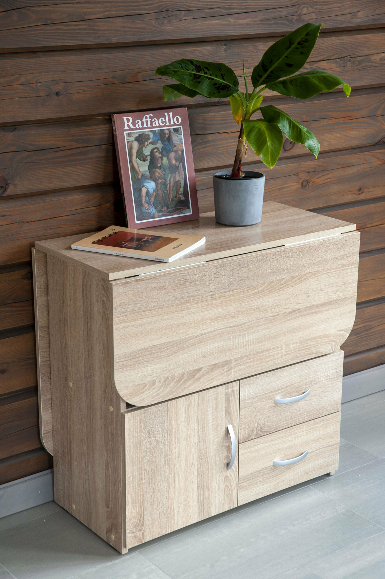 Отзывы на Стол тумба книжка раскладной трансофрмер кухонный обеденный деревянный Hesby Book 1 дуб сонома