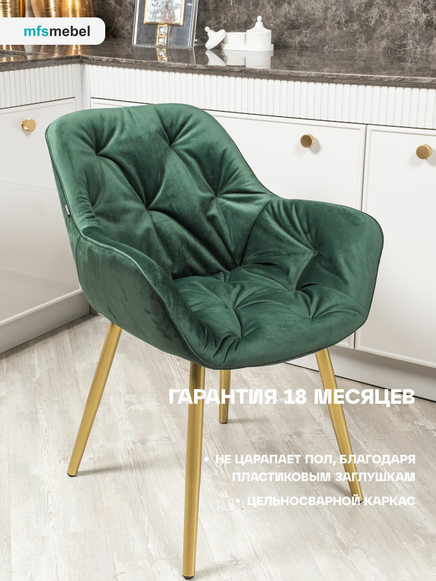 Комплект стульев Бейлис для кухни и гостиной зеленый/золотые ноги, 2 шт. информация: