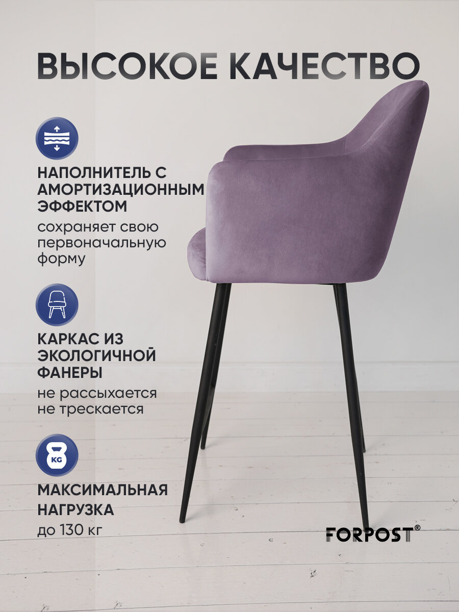 Барный стул со спинкой для кухни Ститч плюм информация: