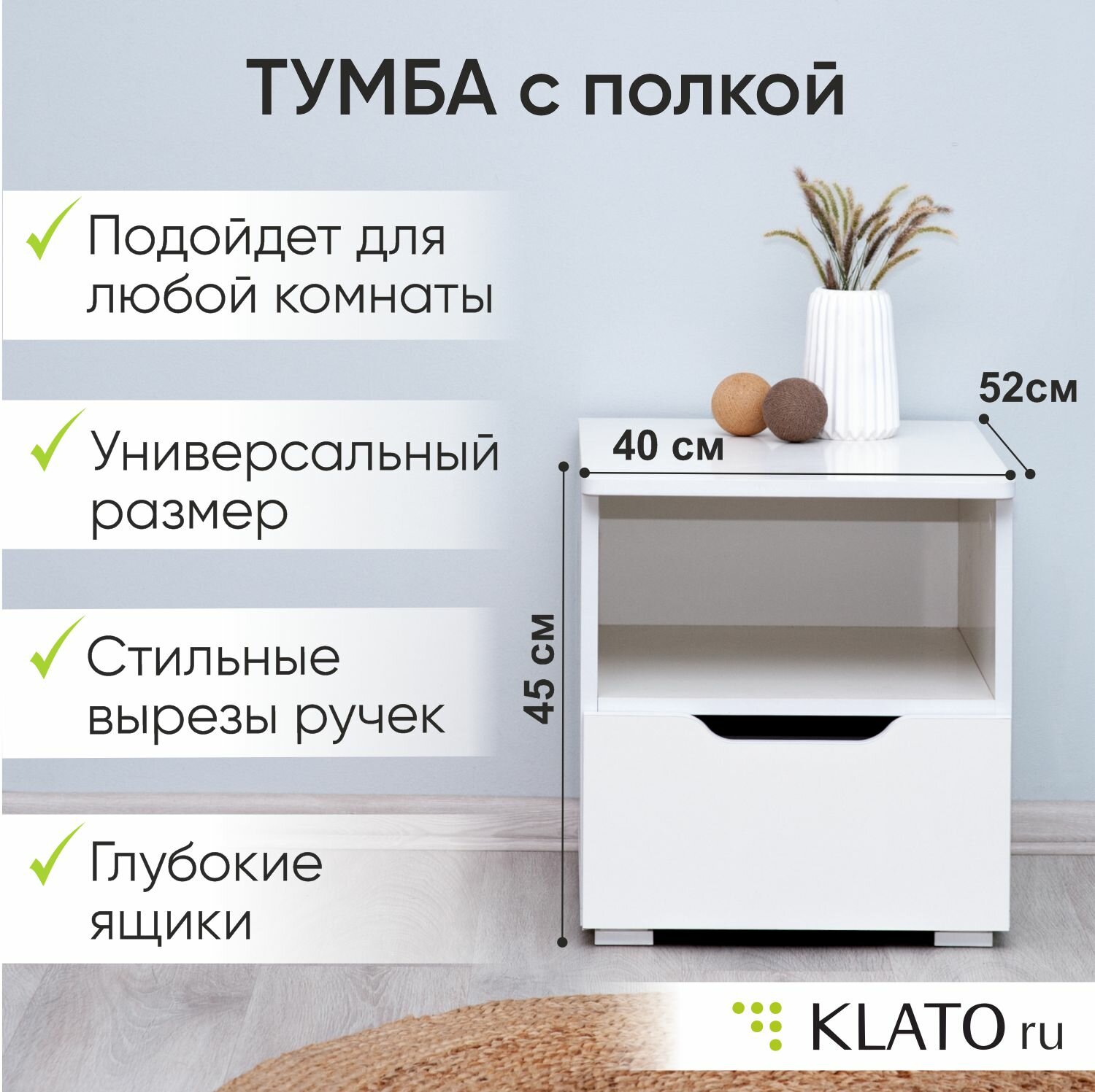 Отзывы на Тумба прикроватная с ящиком и полкой, в спальню, в гостиную, в прихожую, 40х52х45 см, Momal белая