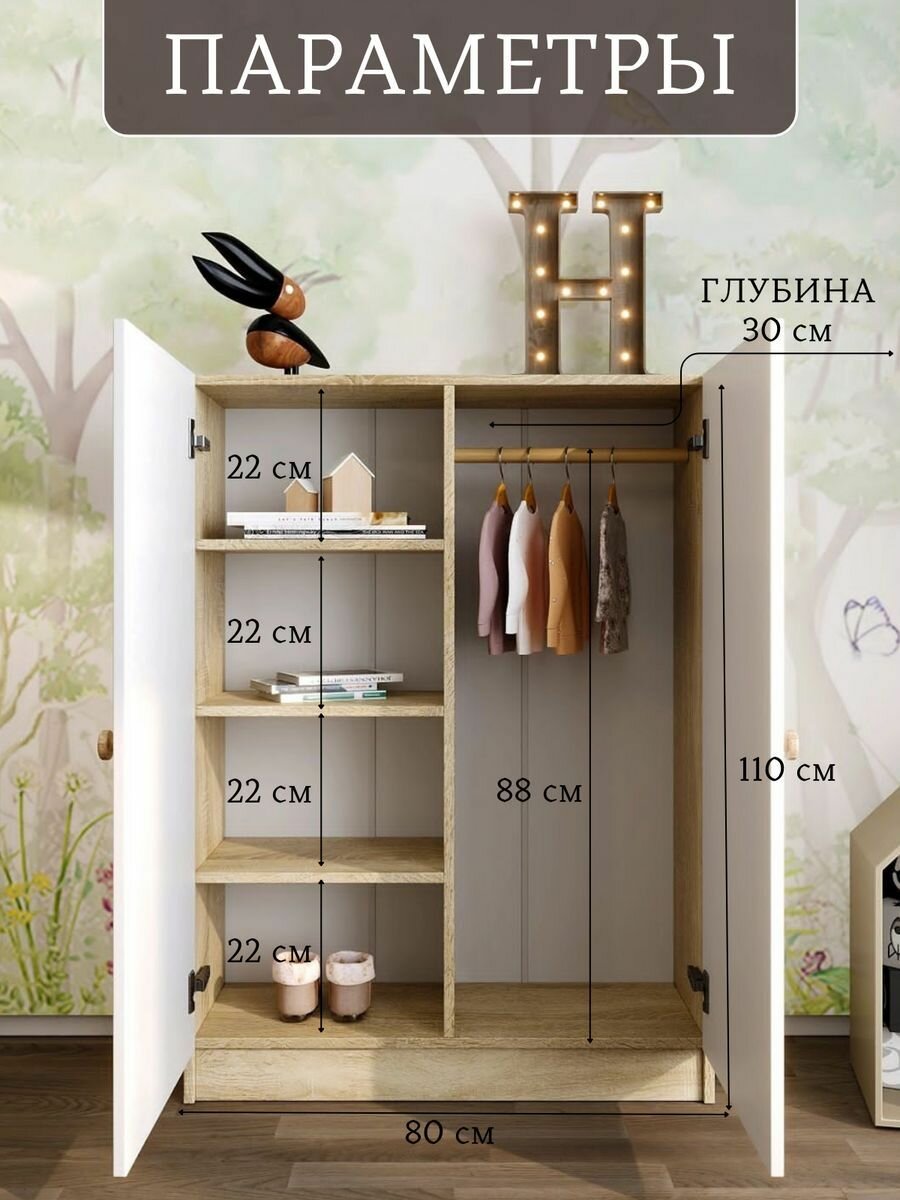 Детский шкаф Монтессори, 80 х 30 х 110, дуб сонома информация: