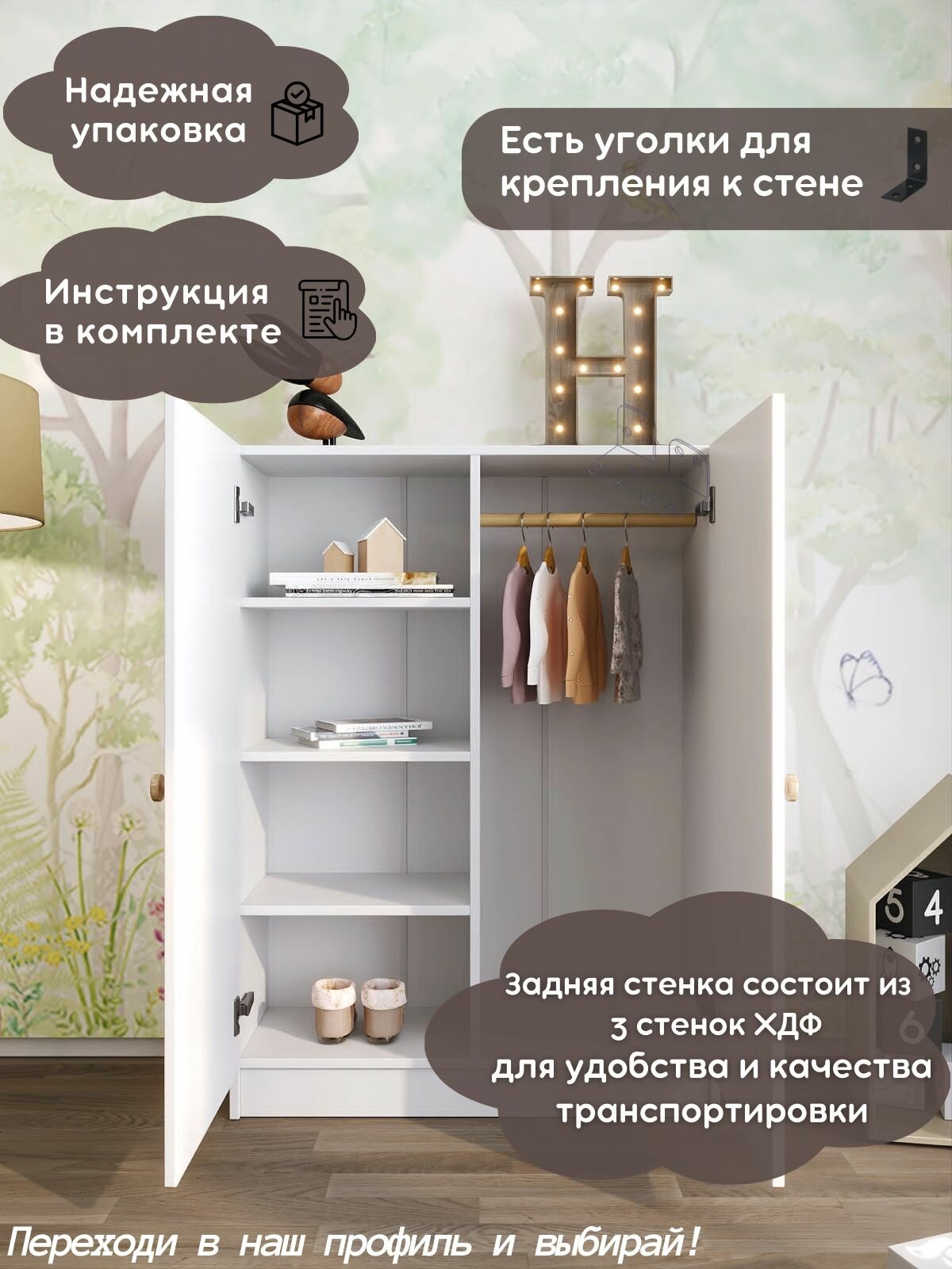 Шкаф для одежды Монтессори 80х30х110 белый информация: