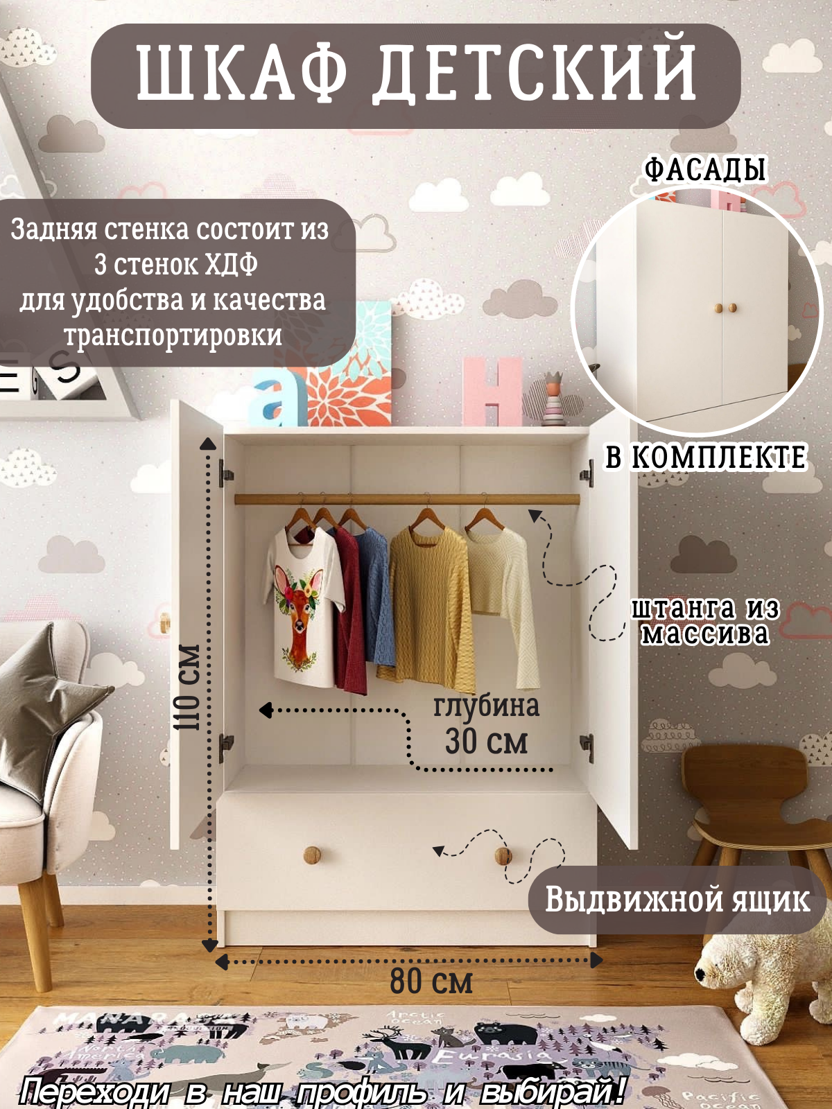 Шкаф для одежды Монтессори, 80х30х110см белый информация: