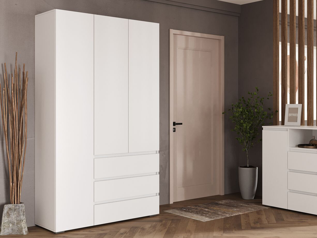 Шкаф для одежды распашной Нонтон Луас, 120 см, 7 полок и штанга, белый глянец