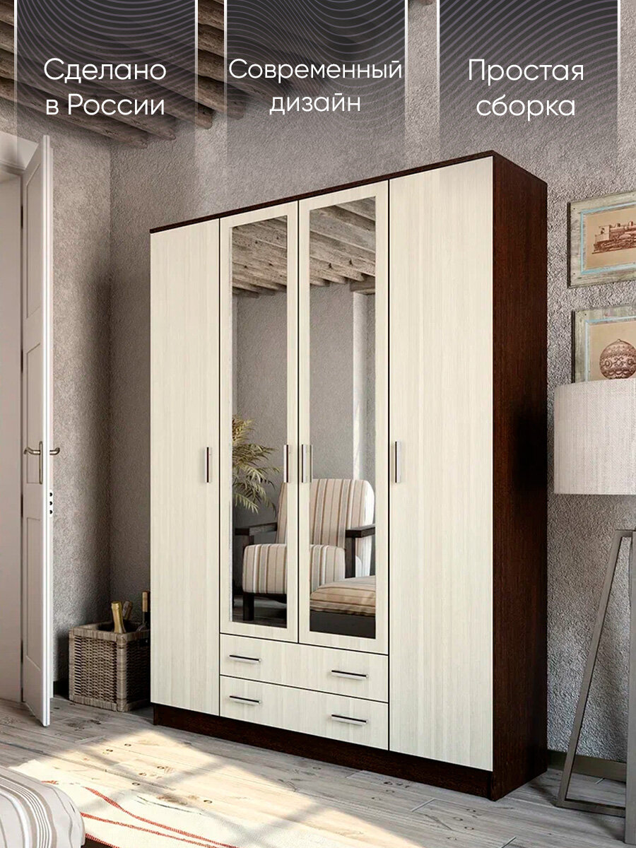 Отзывы на Шкаф распашной Квадро 4х створчатый с зеркалом, Дуб белфорт/Венге