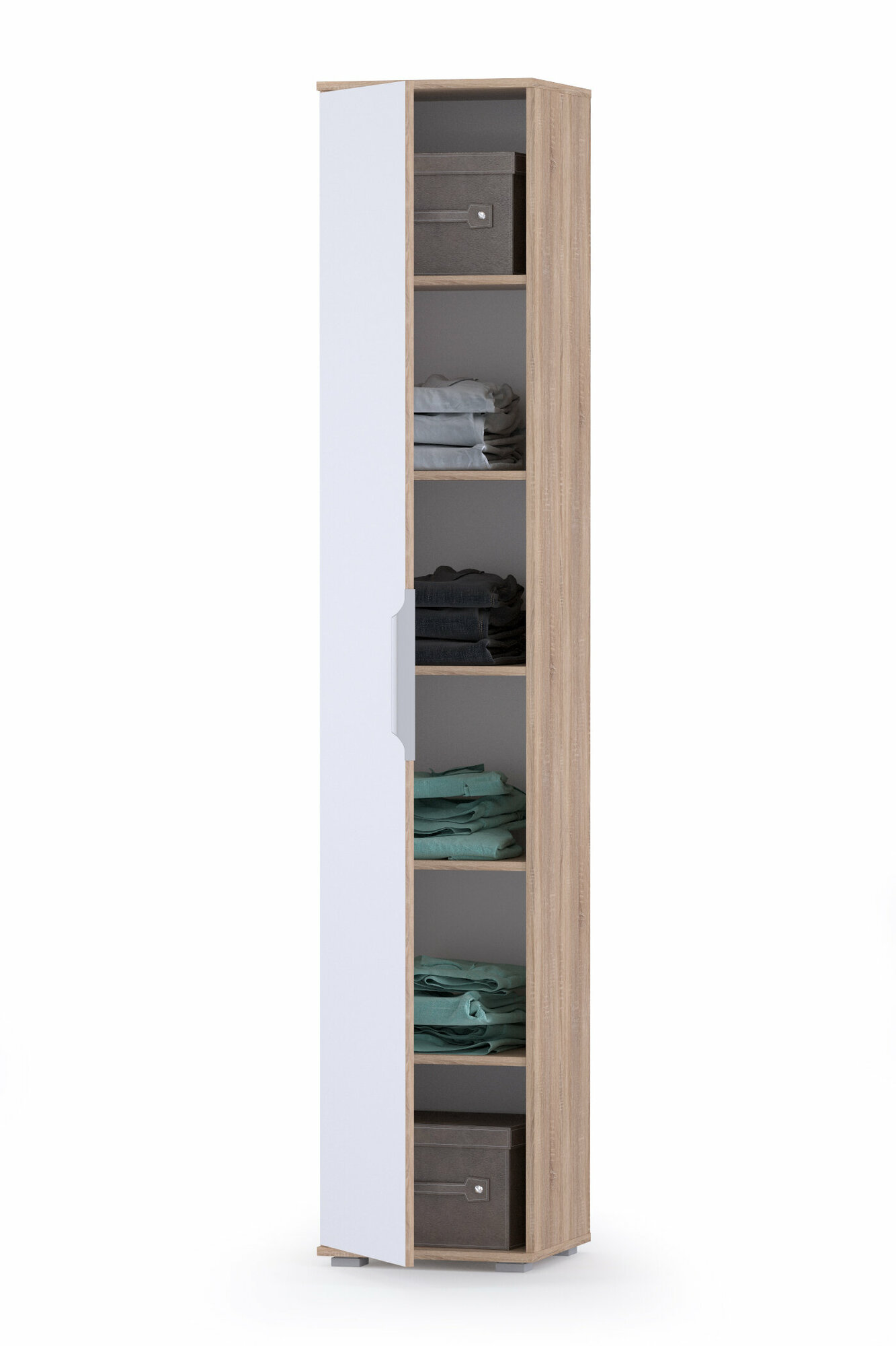 Первый Мебельный Шкаф-пенал для одежды Куба с полками, 40х38.3х210.6 см Дуб Сонома / Белый