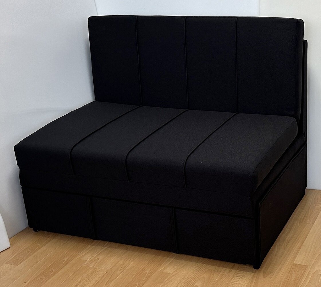 10 цен на Диван-кровать Сёма без подлокотников, с ящиком для белья, обивка ткань, цвет черный