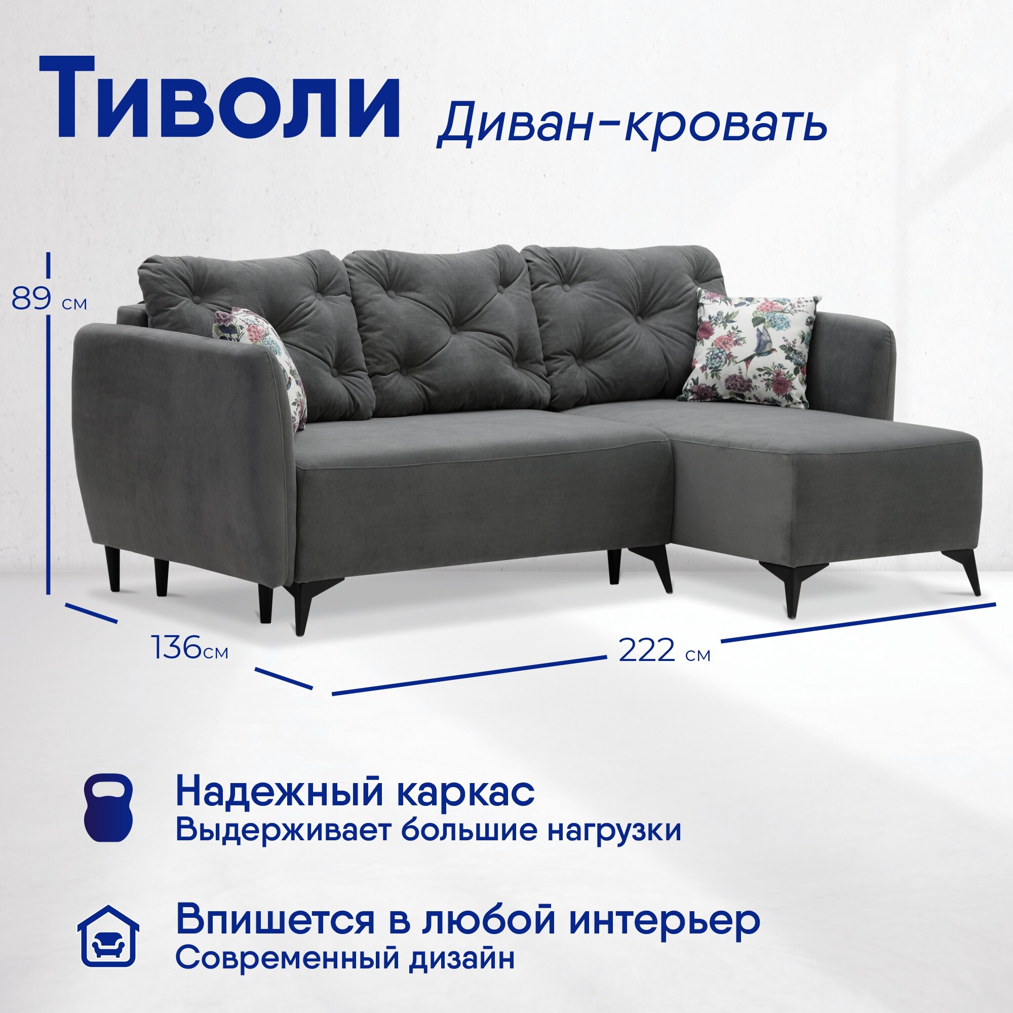 Отзывы на Угловой диван Тиволи 222х136х89 см, спальное место: 190х130см, Ultra Grey, Garden Lilac