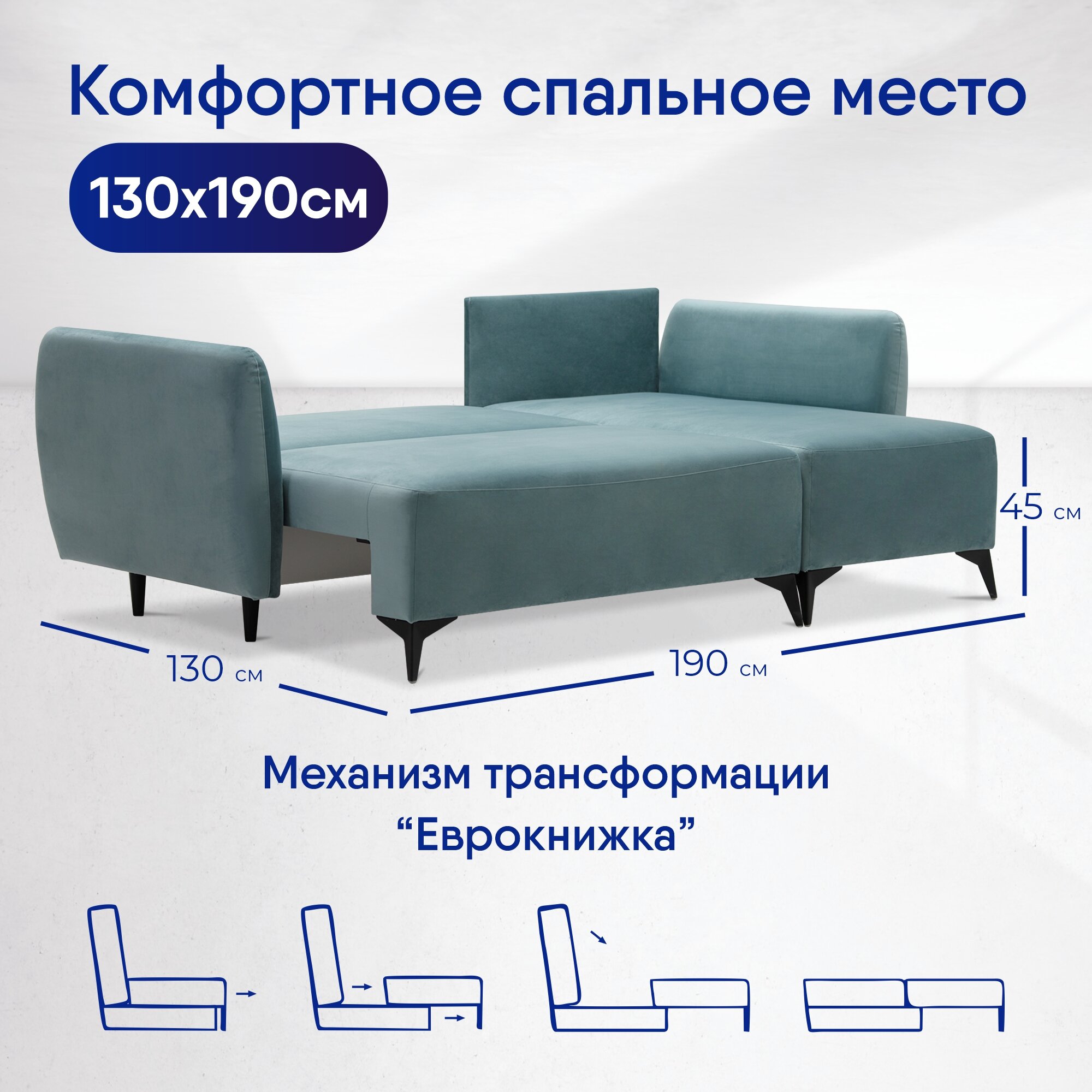 Угловой диван-кровать Тиволи 221х136х89 см, еврокнижка, Ладья, диван в гостиную, спальню, спальное место: 190х130см, Mirey 15 55 664 ₽