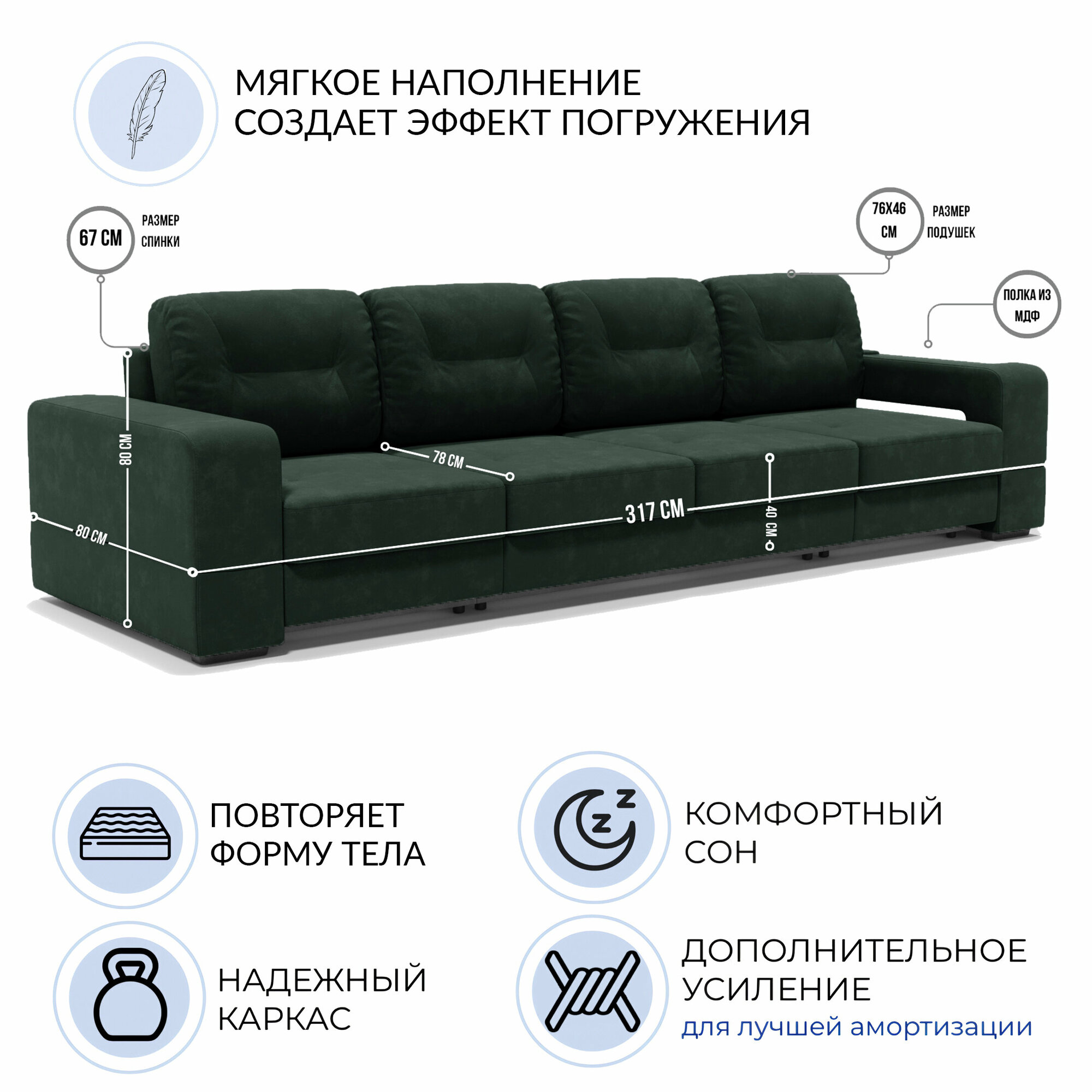 Отзывы на Прямой диван в гостиную «Барон 2 с дополнительной секцией», раскладной диван трансформер на механизме «тик-так», 317х151х90см, зелёный