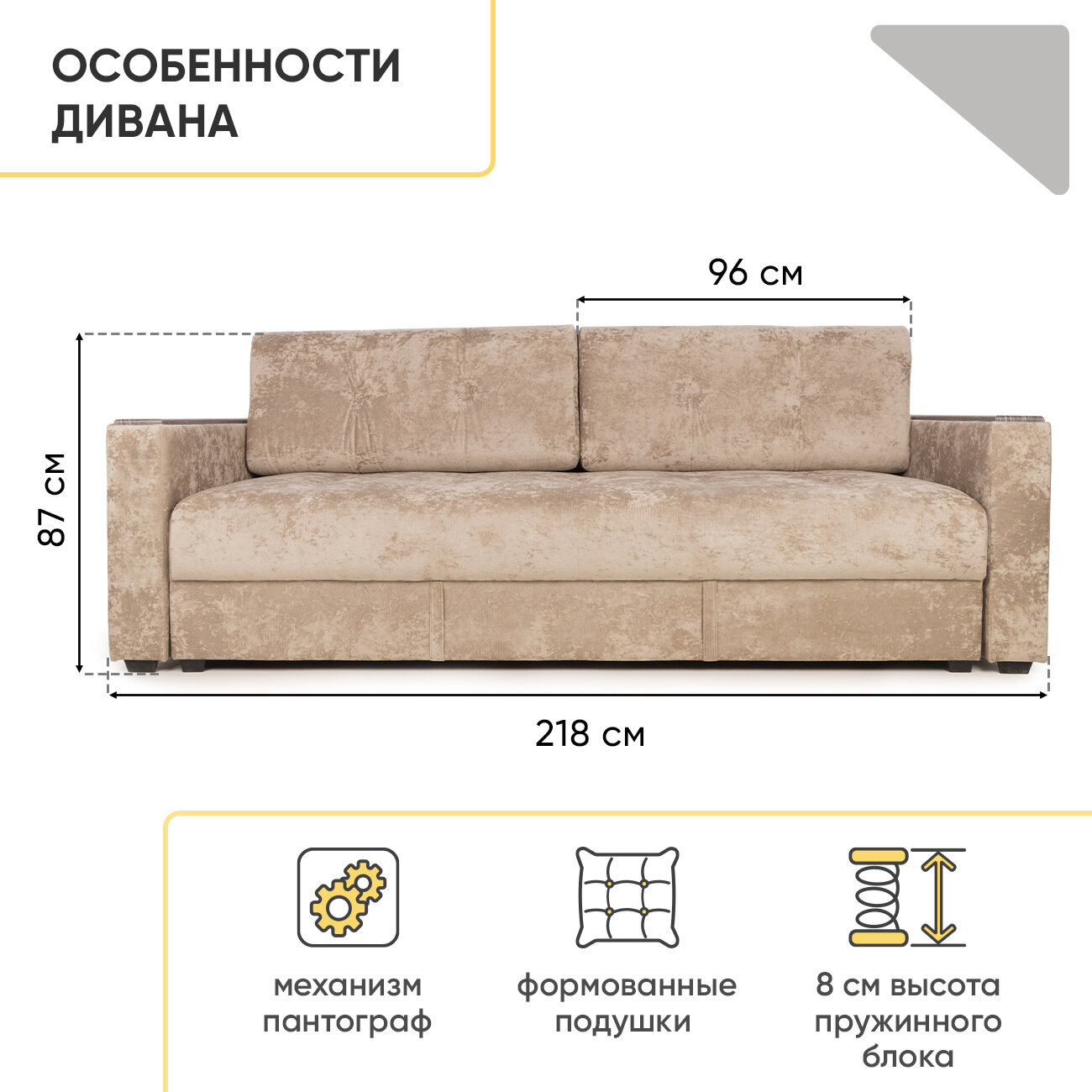 Диван кровать раскладной с подлокотниками, 2 подушками и ящиком, 218х97х87 см, Бежевый Ocean 130 информация: