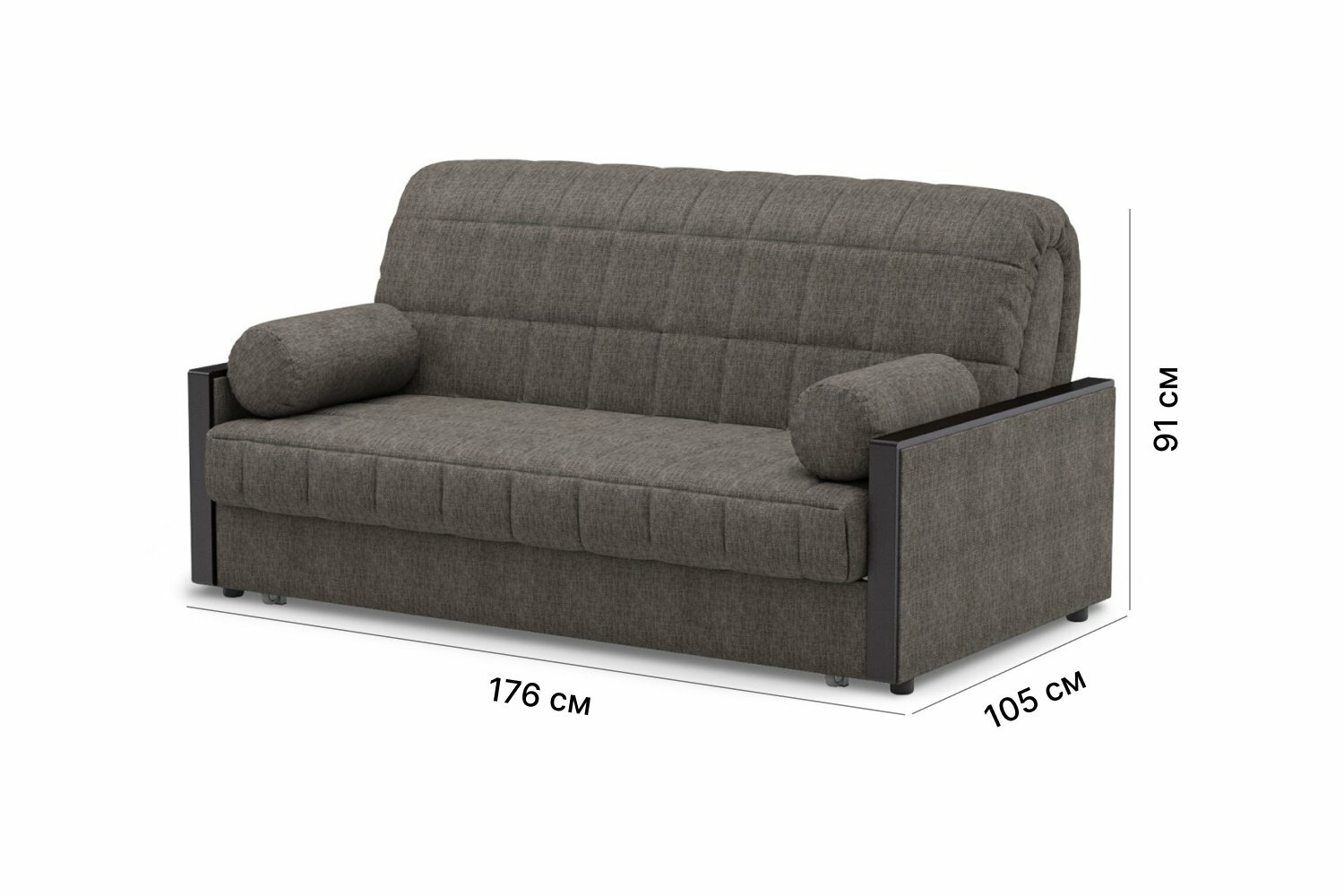 Диван-кровать аккордеон, компактный спальное место 120х200, серый / венге, матрас ППУ, габарит 175 см со столиком и ящиком для белья