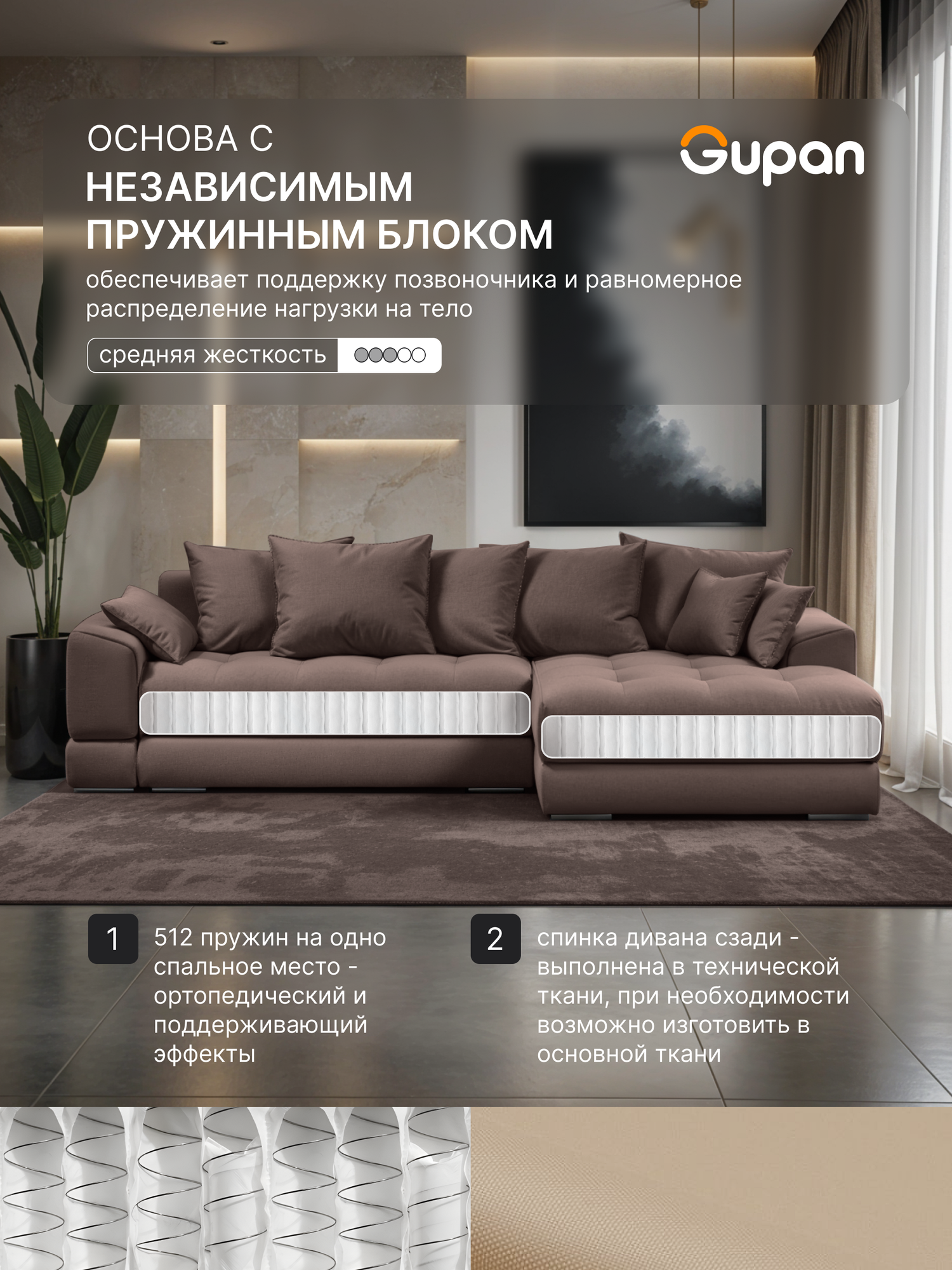 Отзывы на Угловой диван-кровать Gupan Nordkisa, пружины, механизм Еврокнижка, 285х190х87 см, наполнитель ППУ, ящик для белья, цвет Amigo Chocolate