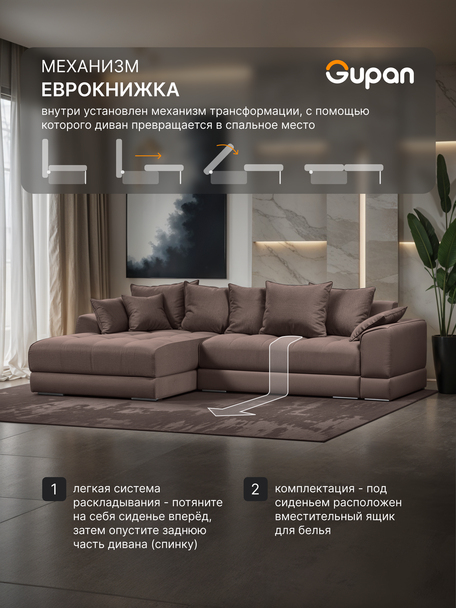 10 цен на Угловой диван-кровать Gupan Nordkisa, пружины, механизм Еврокнижка, 285х190х87 см, наполнитель ППУ, ящик для белья, цвет Amigo Chocolate