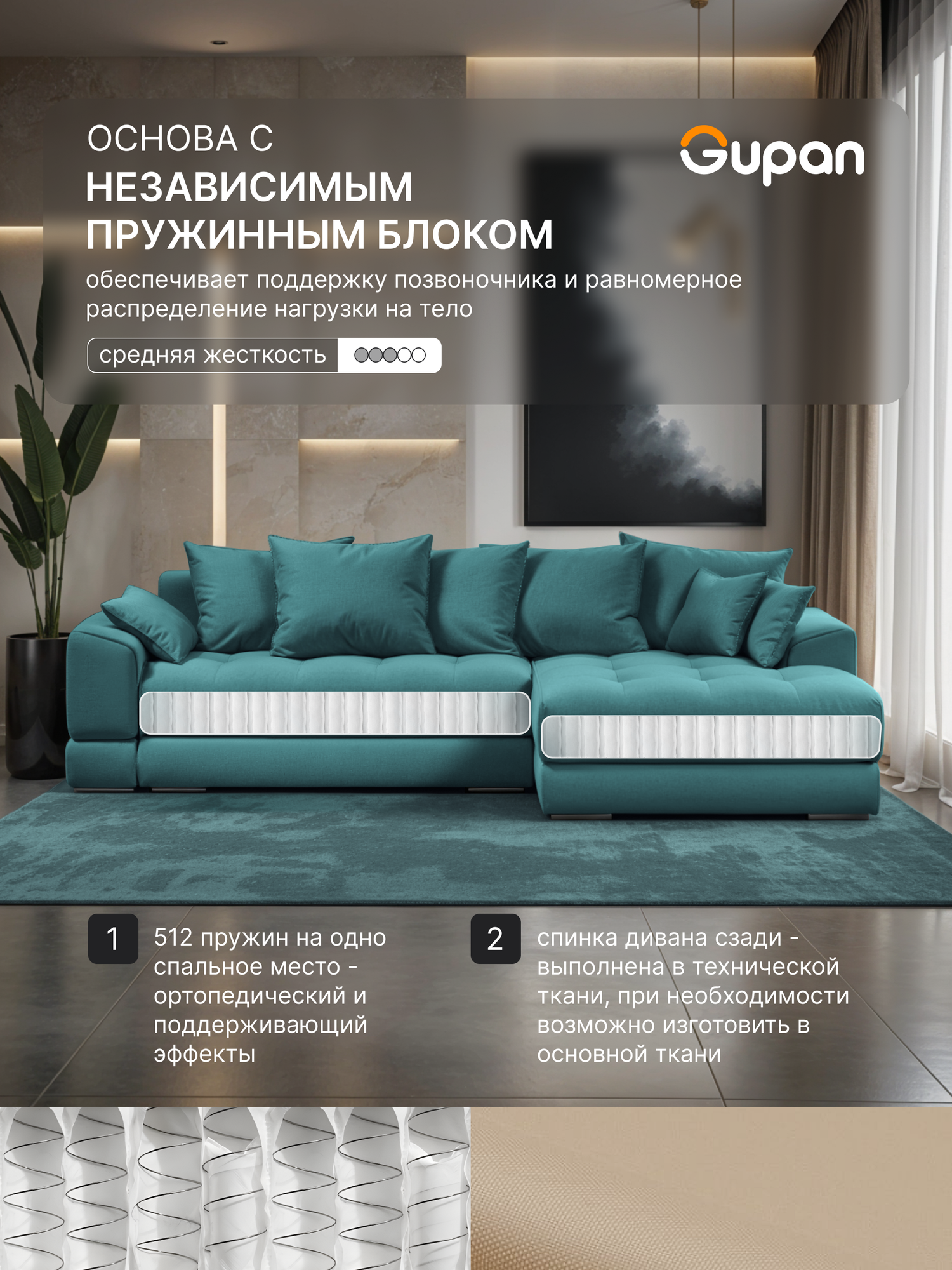 Отзывы на Угловой диван-кровать Gupan Nordkisa, пружины, механизм Еврокнижка, 285х190х87 см, наполнитель ППУ, ящик для белья, цвет Amigo Lagoon