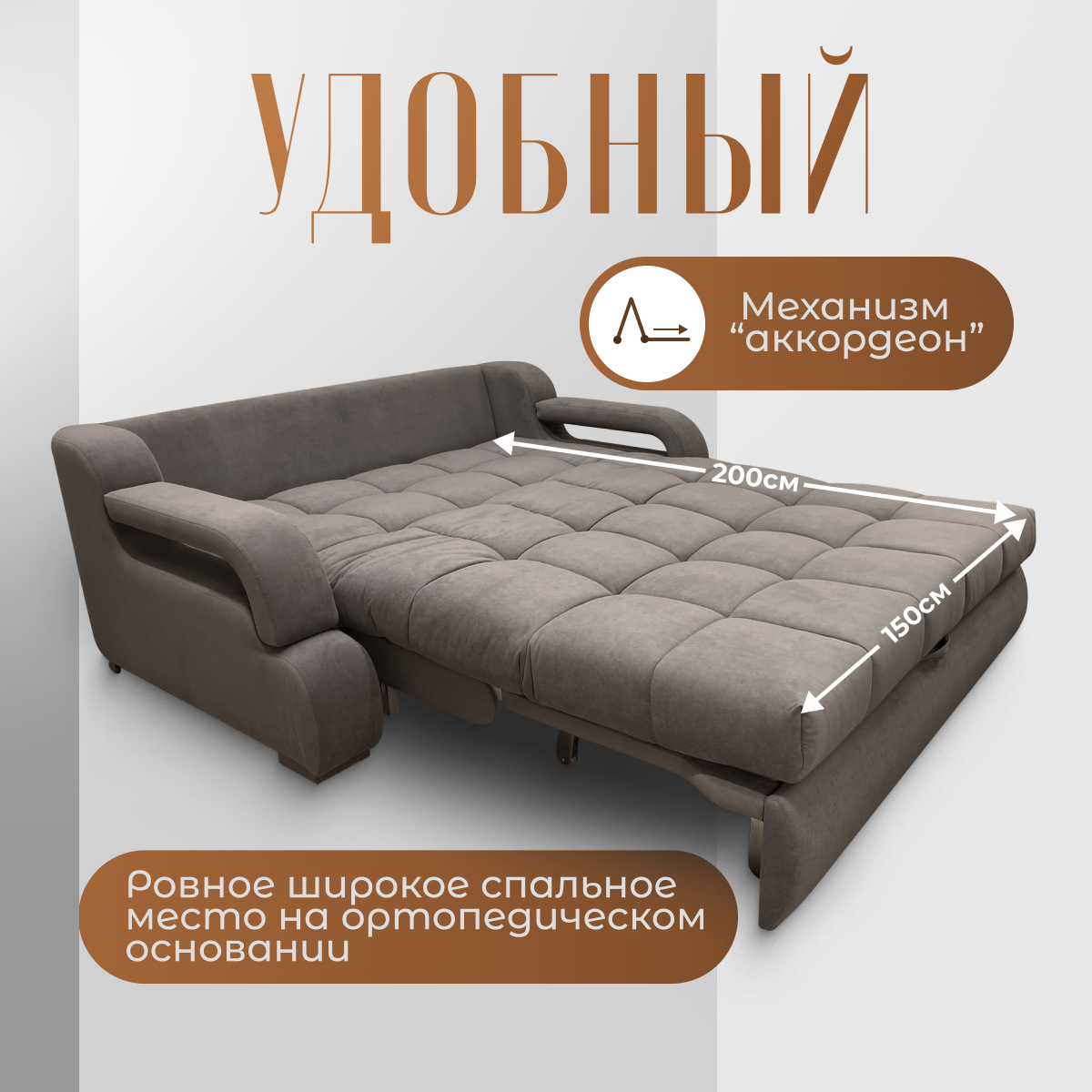 Отзывы на Раскладной диван кровать трансформер "Барон-140" с подлокотниками. Независимый пружинный блок. Механизм Аккордеон, 190х120х100, велюр темно-бежевый