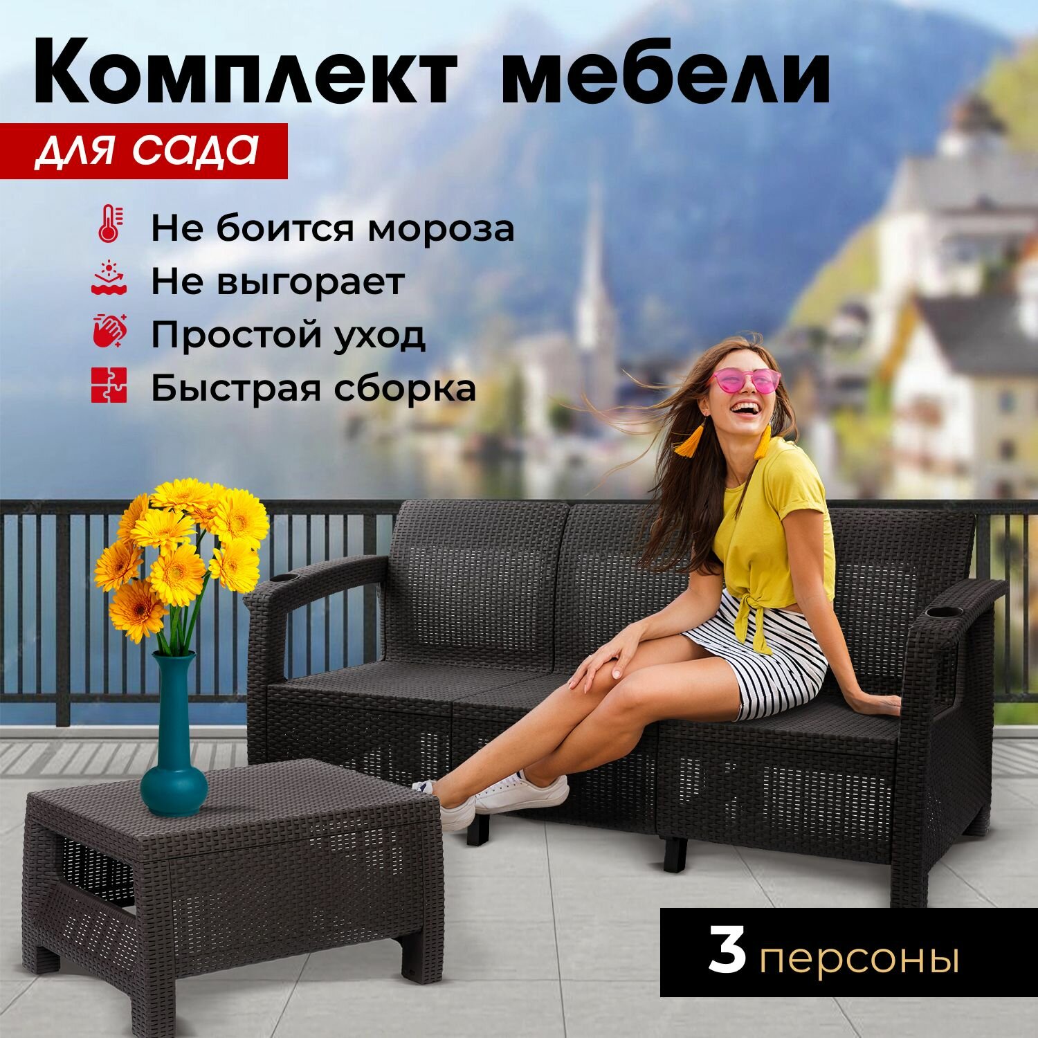 10 цен на Комплект садовой мебели HomlyGreen (3-х местный диван + кофейный столик), искуственный ротанг, мокко, без подушек