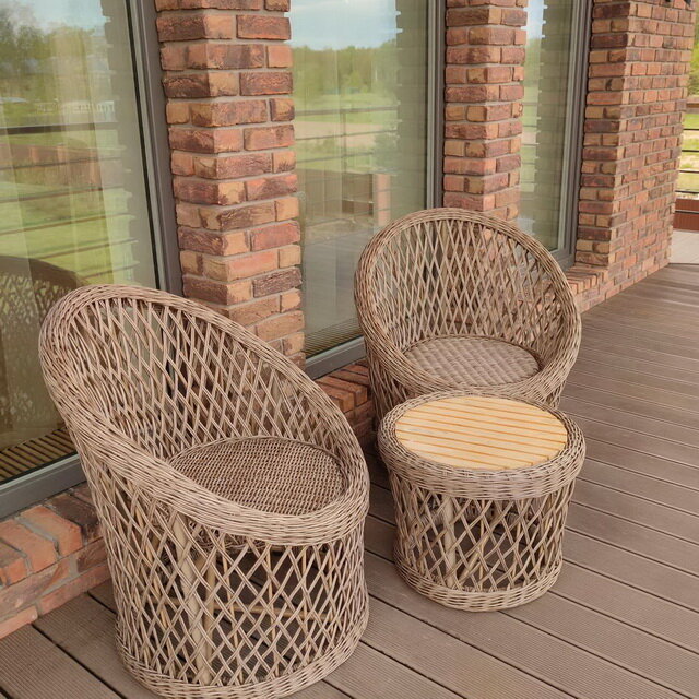 | Дополнительная информация | размер кресел: 86*77*72 см, размер столика: 55*43 см, материал: лоза, древесина акации, олефин, может использоваться в помещении и на улице |