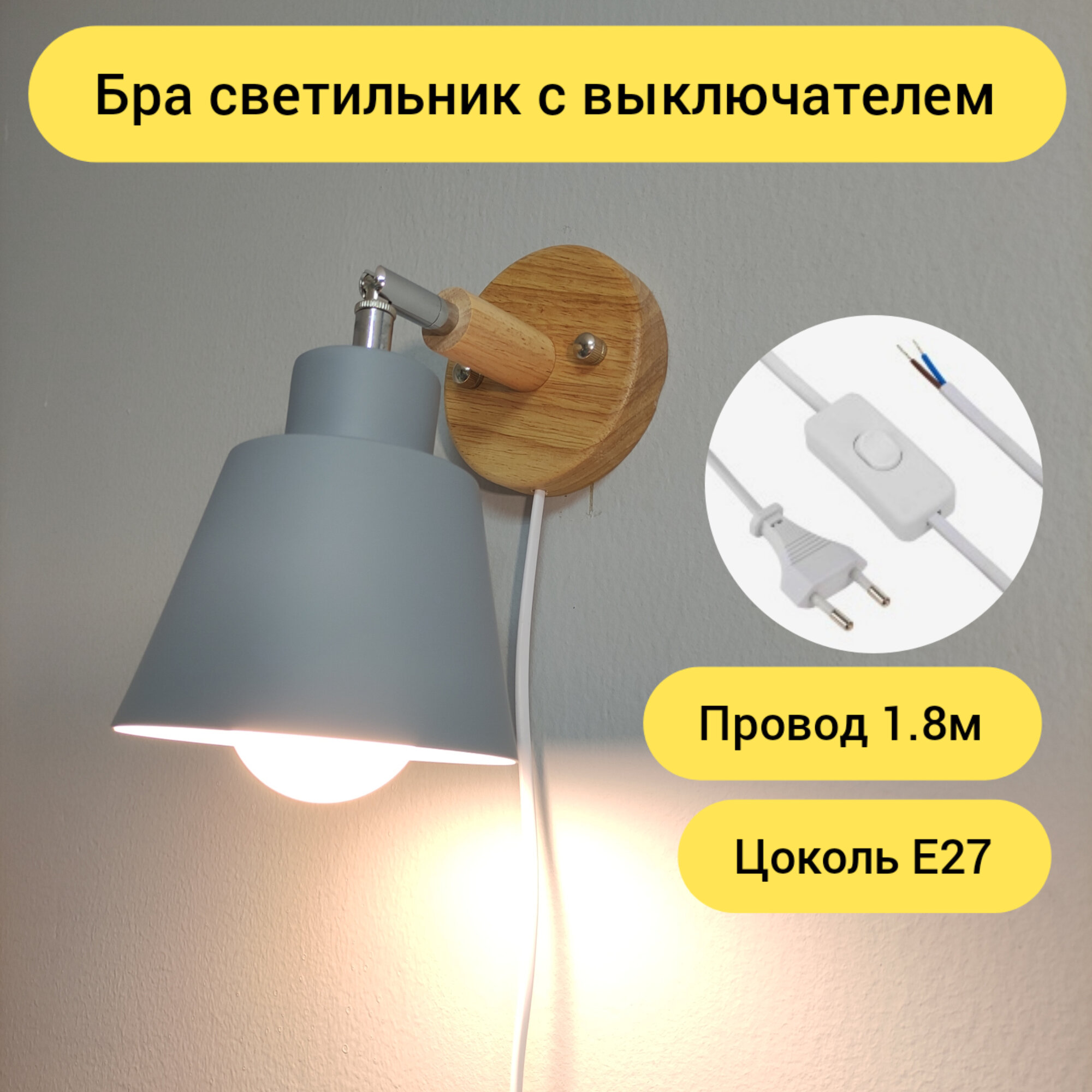 10 цен на Серый настенный светильник с выключателем, Бра светильник с проводом, Е27