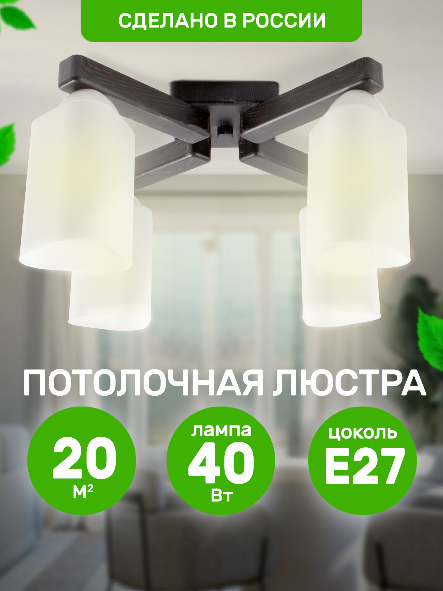 10 цен на Люстра потолочная "Астра", 4хЕ27х40Вт, венге, пластиковые плафоны