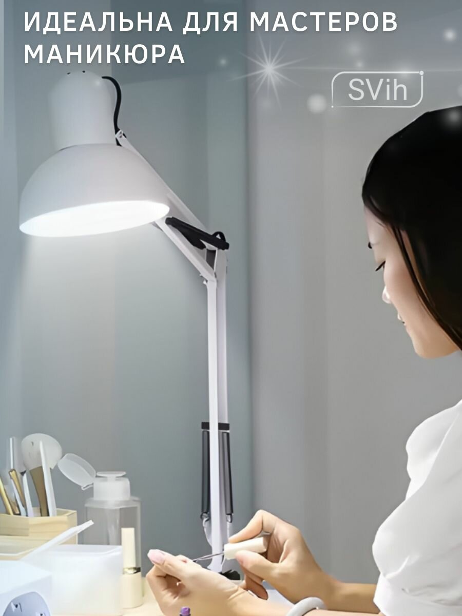 Svih Лампа настольная для маникюра на струбцине, для школьника светильник для дома освещение в спальню, детскую, прихожую информация: