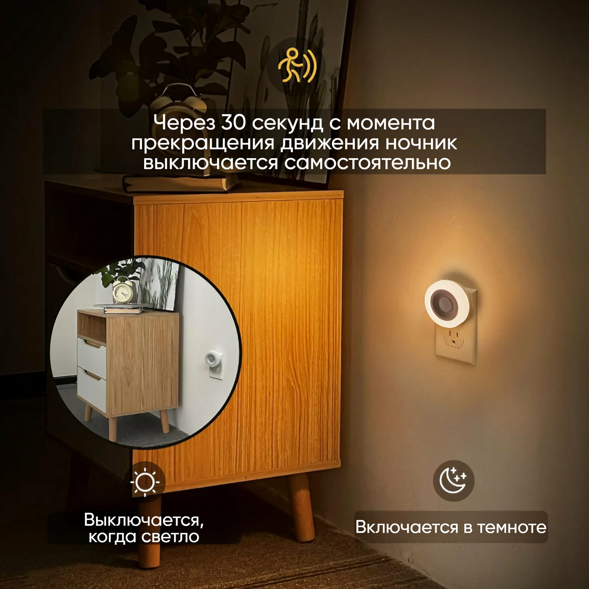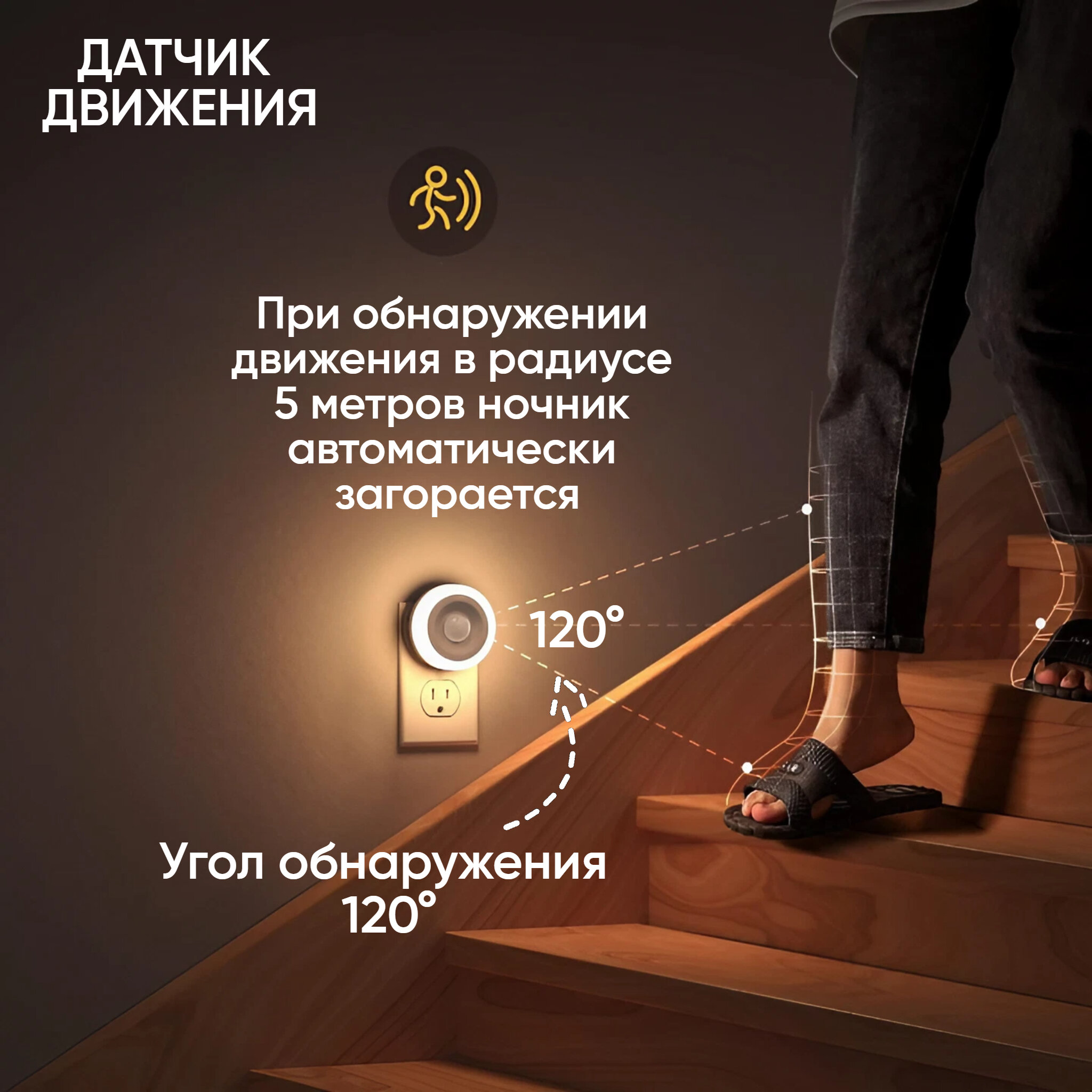 10 цен на Макстоб Ночник в розетку с датчиком движения и регулировкой яркости, 5 Вт