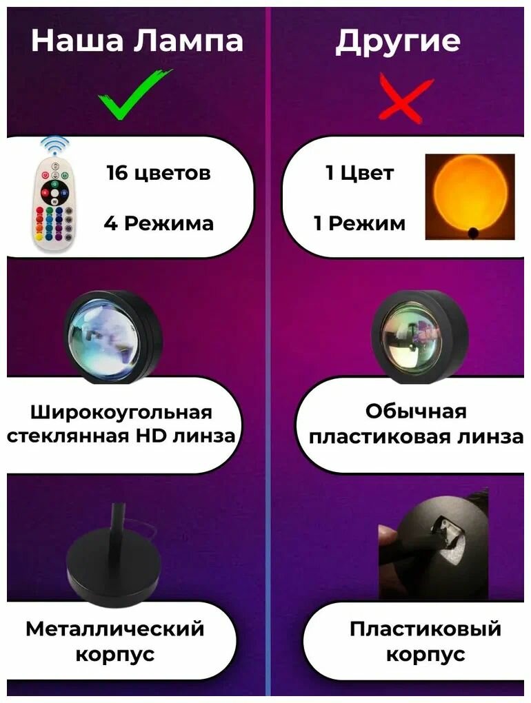 Отзывы на Светодиодный Атмосферный Светильник, настольная LED лампа для Фото и светотерапии, проектор заката солнца, RGB с пультом ДУ